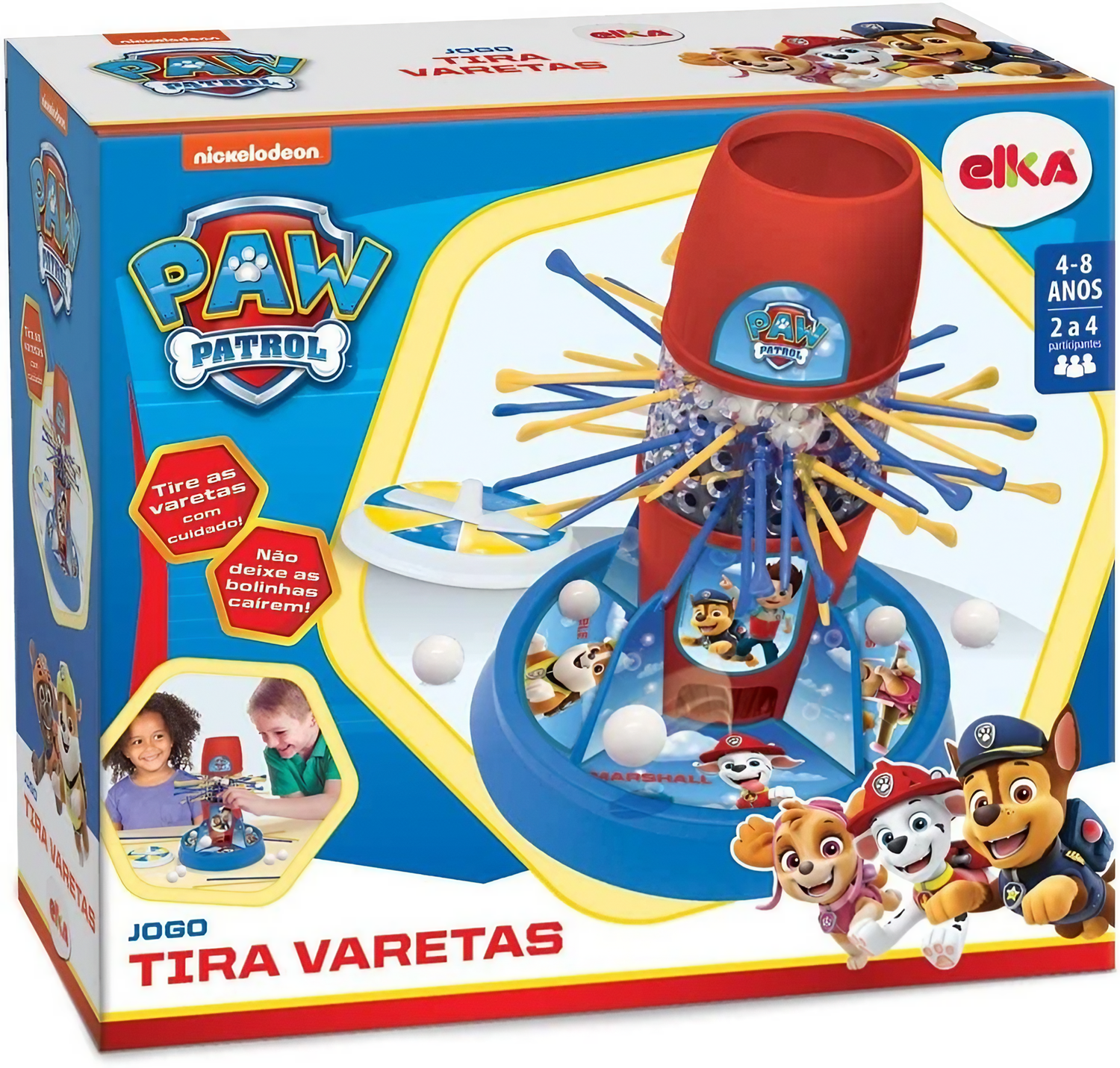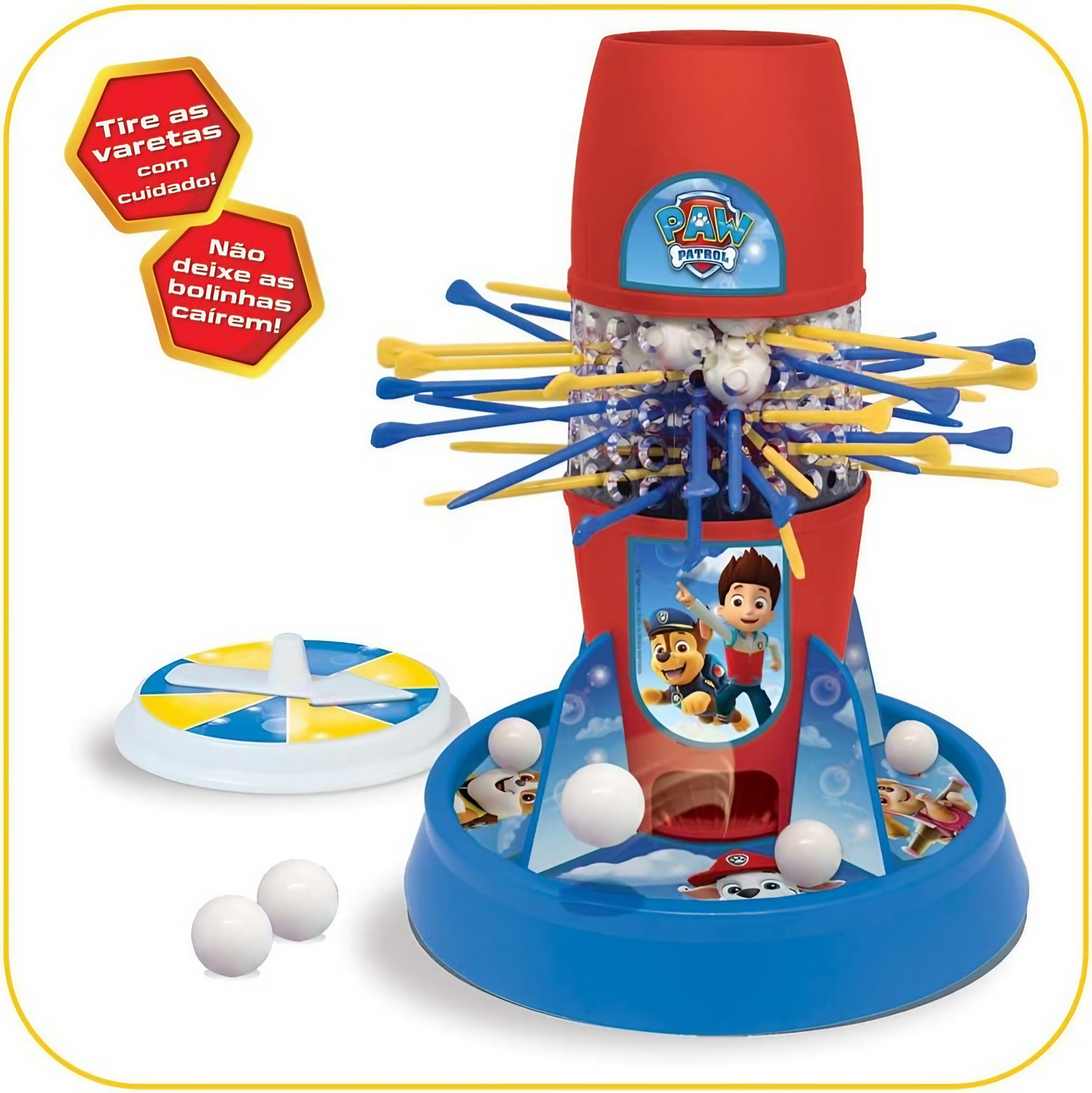 O Jogo Tira Varetas da Patrulha canina é pura diversão para a família toda! Teste suas habilidades e mantenha a concentração ao puxar as varetas e evitar que as bolinhas de neve caiam. Coloque as bolinhas dentro da torre, gire a roleta e comece a puxar as varetas, mas cuidado: o vencedor será aquele que deixar cair o menor número de bolinhas. Ideal para crianças de 4 a 8 anos, este jogo estimula a coordenação motora e oferece horas de entretenimento competitivo e saudável.