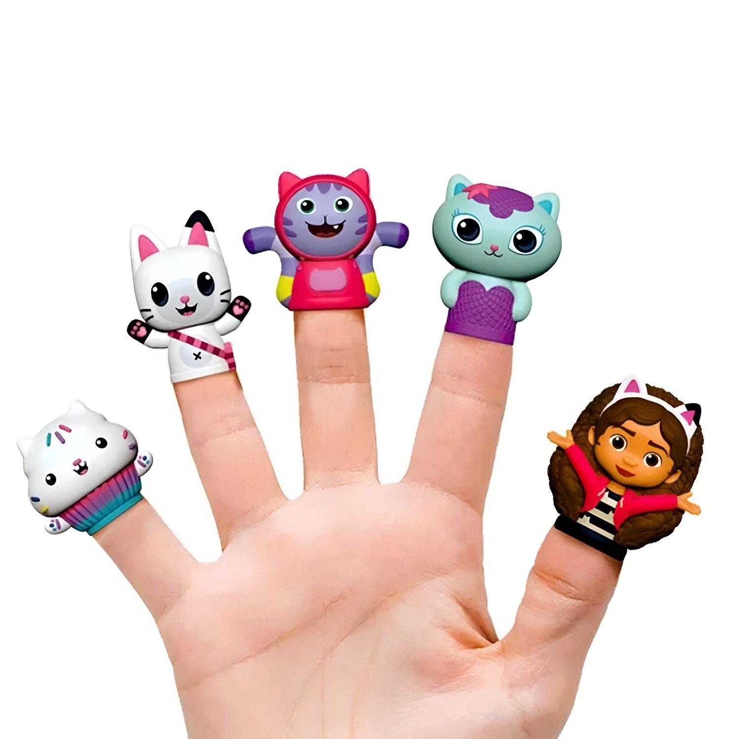 Leve a diversão da Casa Mágica da Gabby para todos os lugares com este kit de dedoches superfofos! São 5 miniaturas perfeitas para criar histórias, brincar no banho ou até enfeitar os lápis.