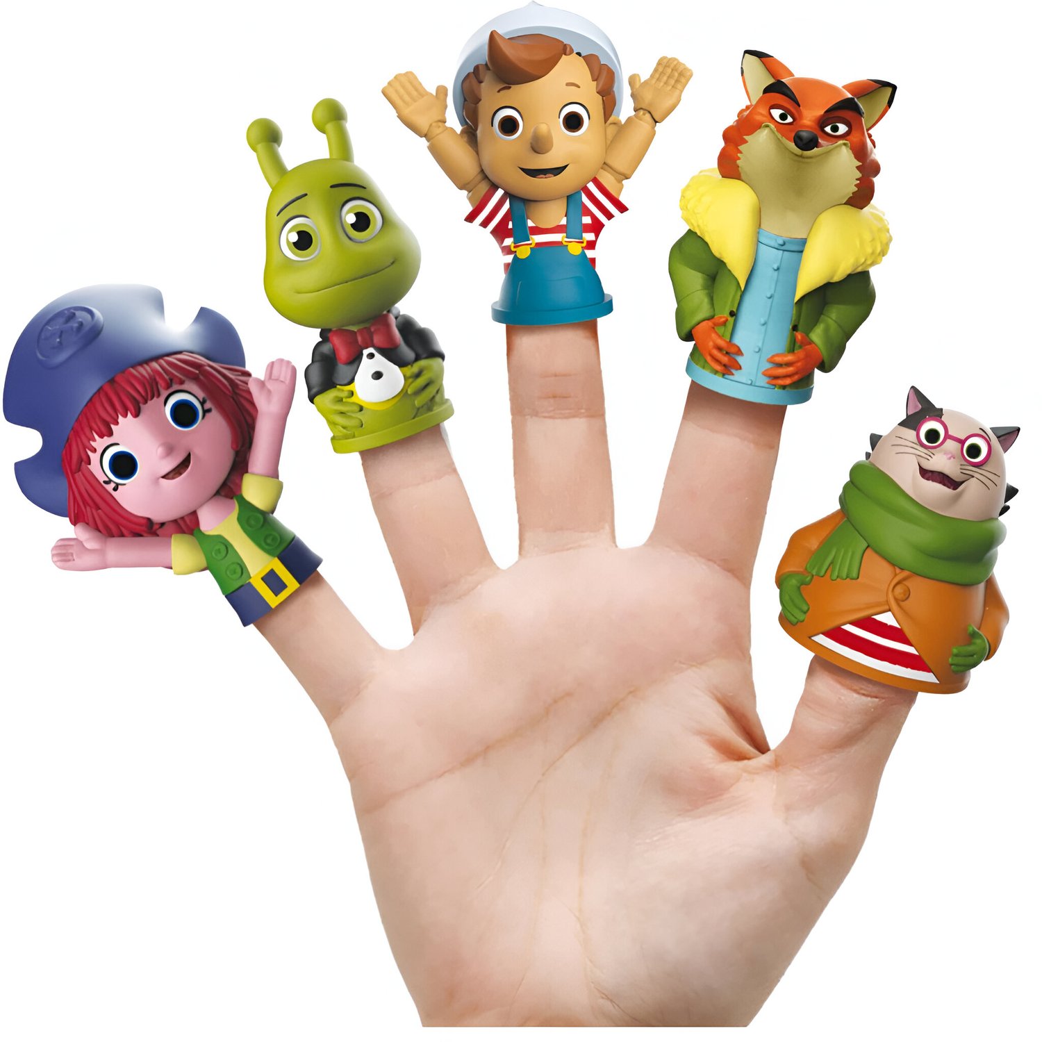 - 05 dedoches: Grilo, Gato, Raposa, Pinocchio e Freeda.