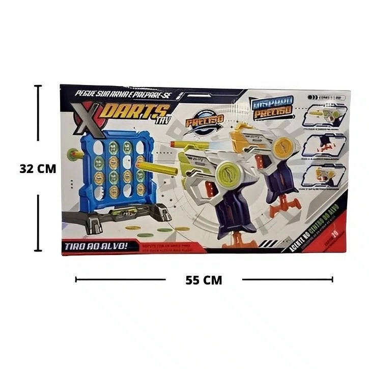 Acessórios Inclusos: O kit inclui 2 lançadores, 1 alvo e 20 dardos, proporcionando tudo o que você precisa para começar suas aventuras de tiro ao alvo.