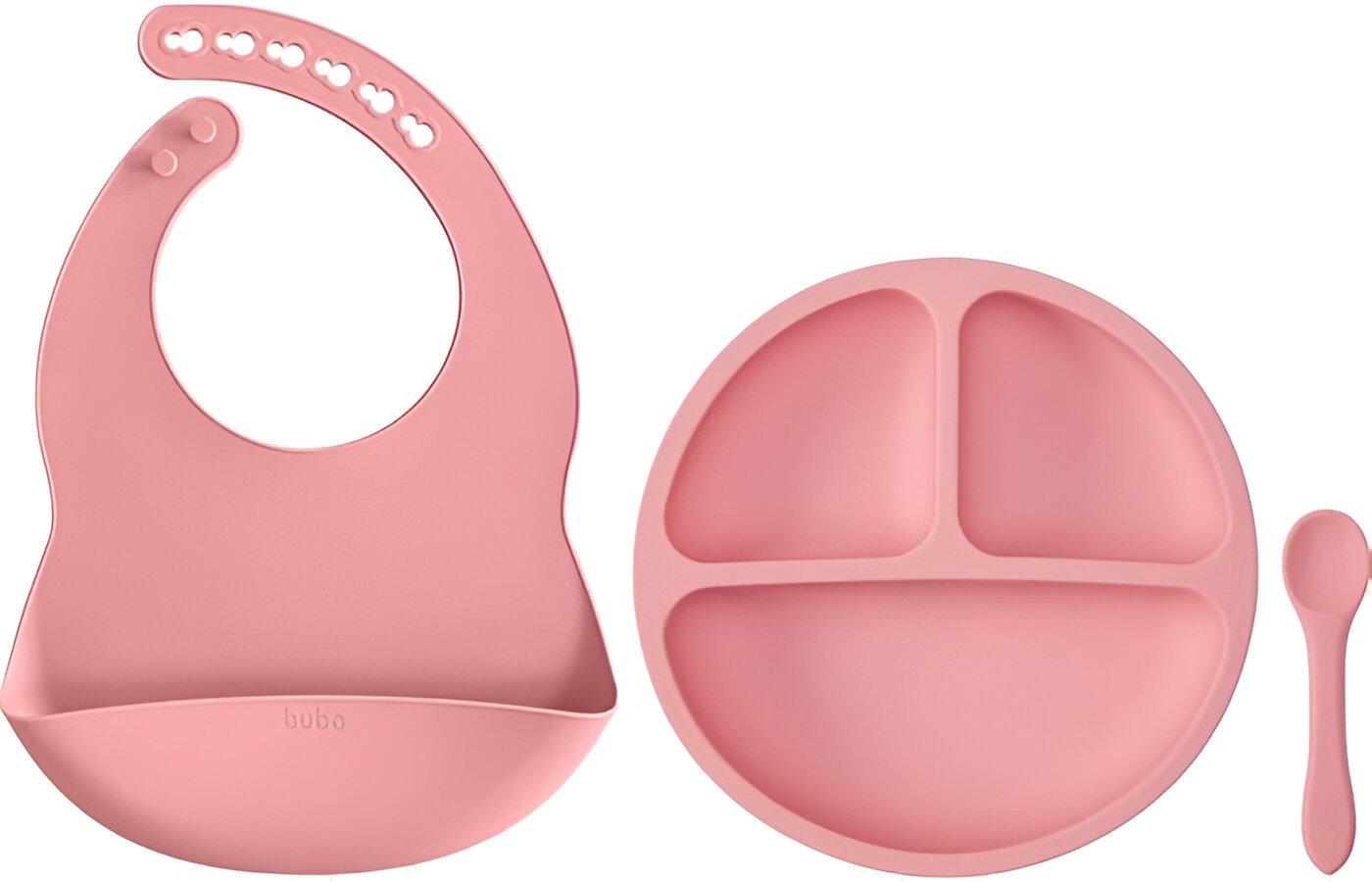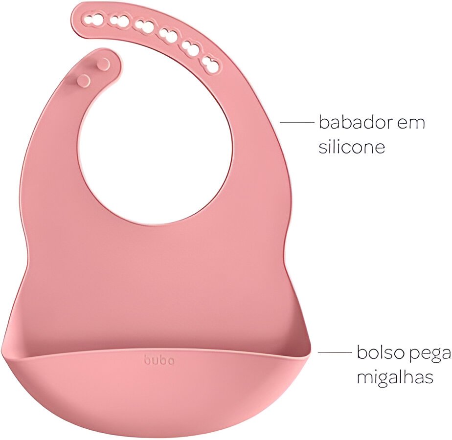 O Kit Refeição em Silicone Rosa da Buba é ideal para tornar a hora das refeições mais prática, segura e divertida. Com design funcional e materiais de alta qualidade, ele acompanha um pratinho com divisórias e ventosa, uma colher macia e um babador com coletor de migalhas, oferecendo conforto e higiene para o bebê. Perfeito para introdução alimentar, estimula a autonomia dos pequenos de forma lúdica e segura!