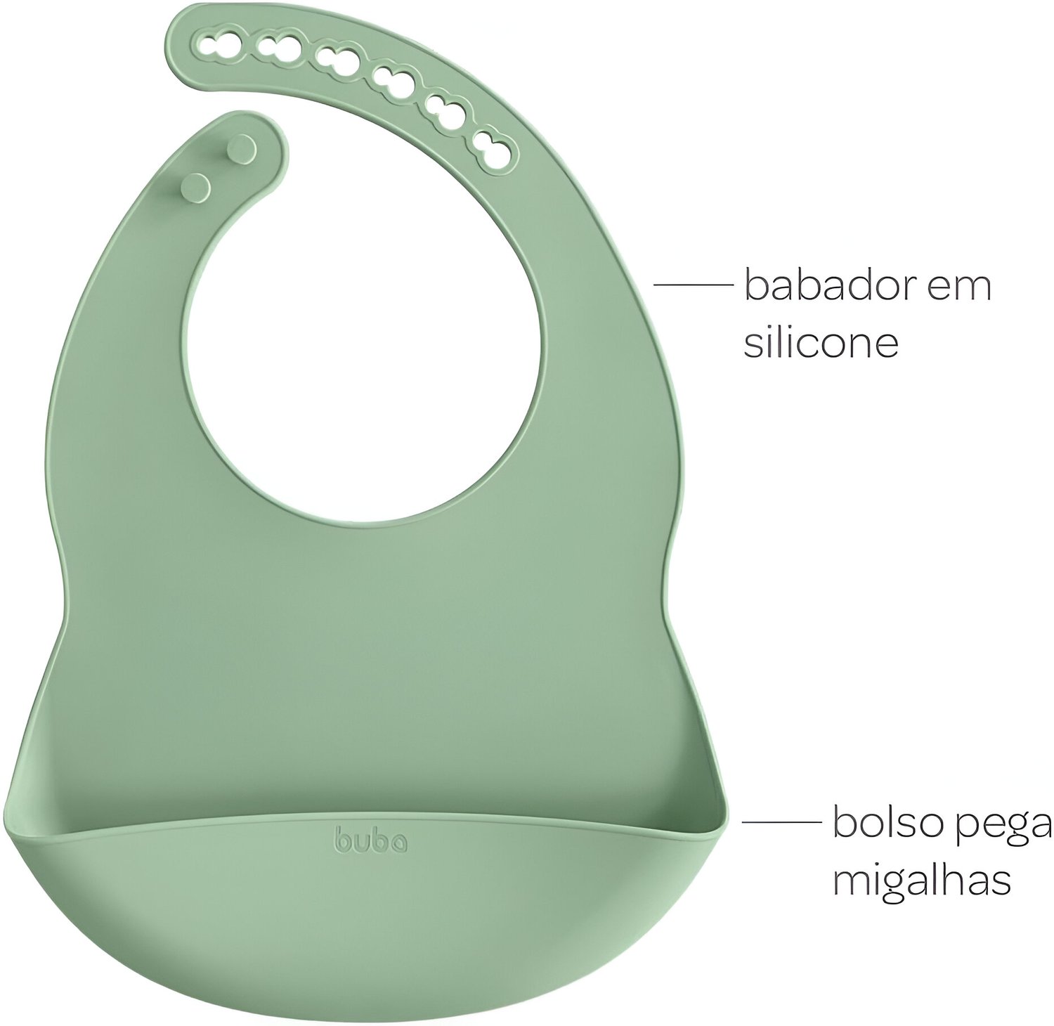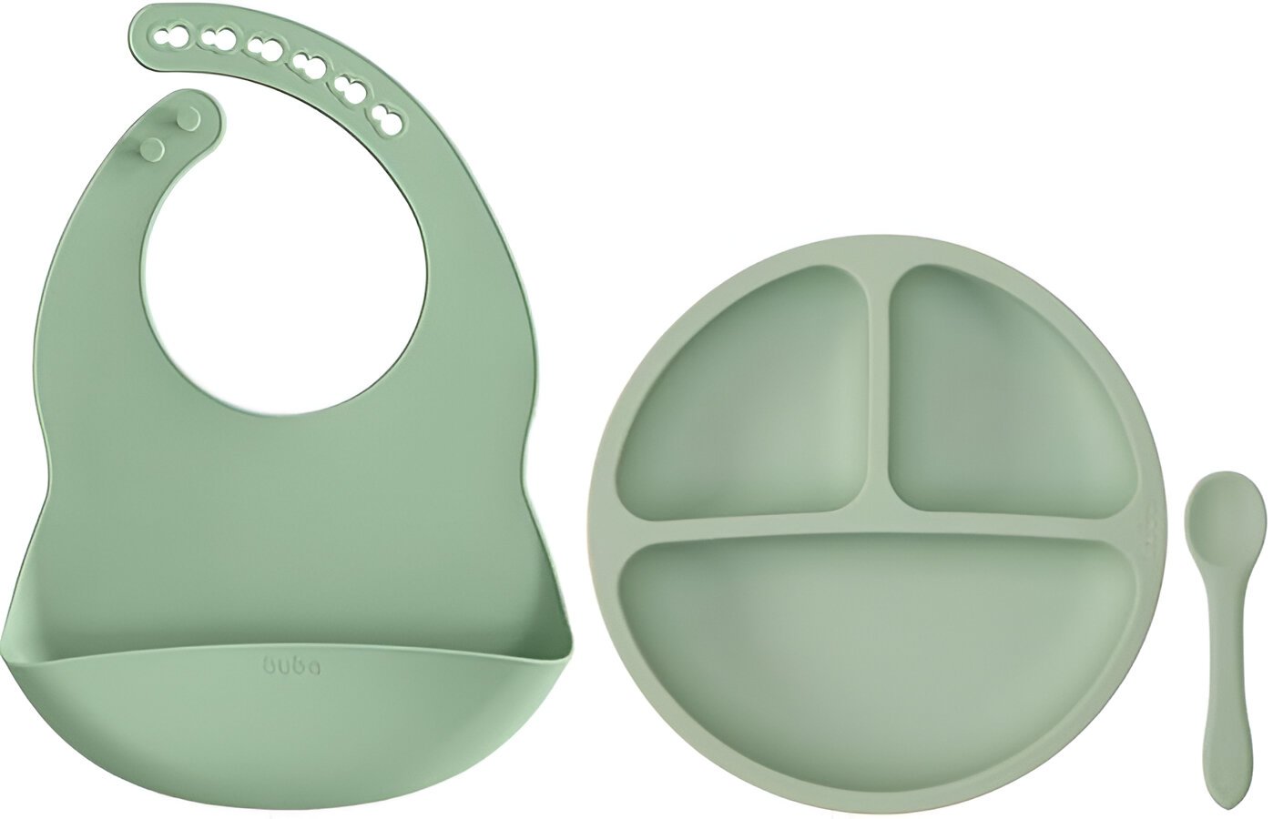 O Kit Refeição em Silicone Verde da Buba foi desenvolvido para tornar a hora da alimentação mais prática, segura e divertida para os pequenos! Composto por pratinho com divisórias, colher macia e babador com coletor de migalhas, este kit é ideal para a fase de introdução alimentar, oferecendo conforto, higiene e funcionalidade para pais e bebês.