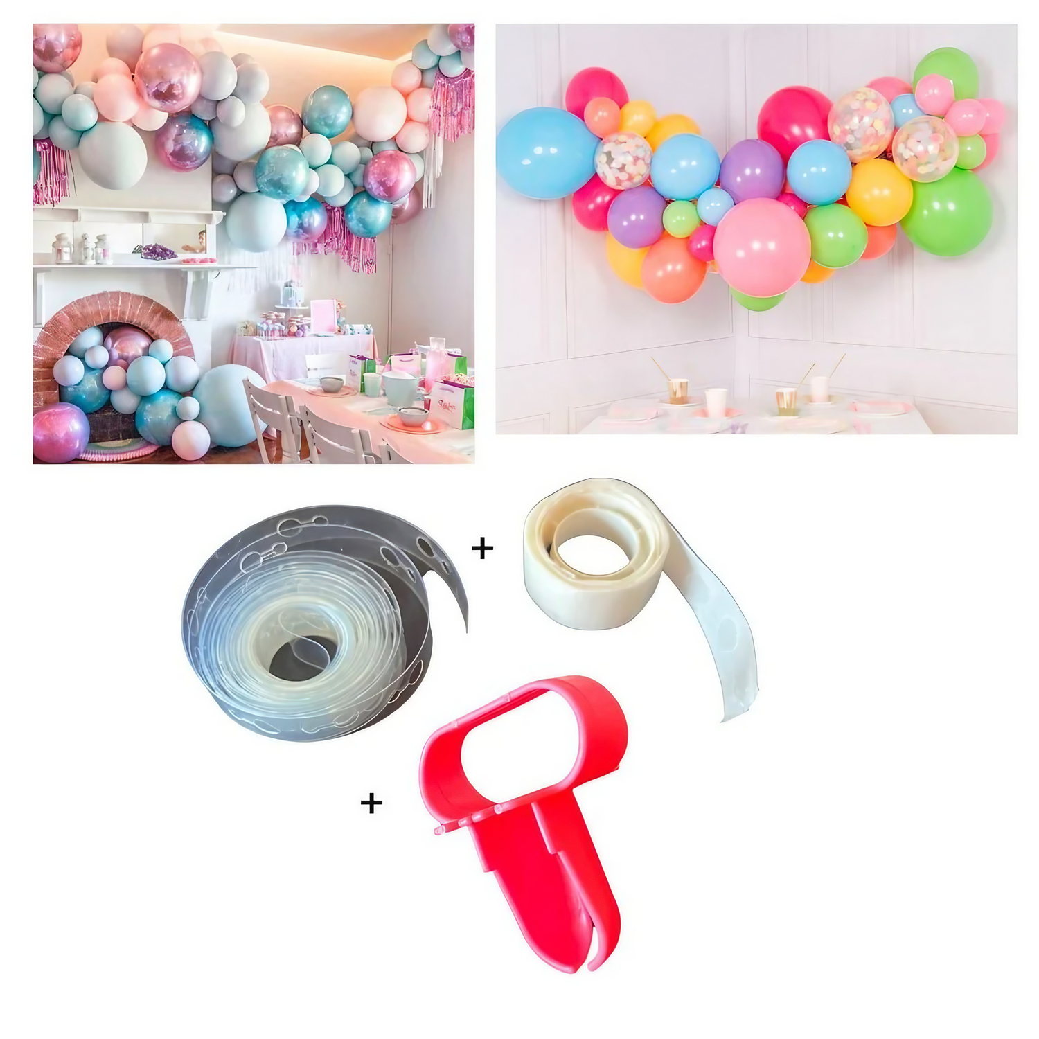 - 1 Fita para Balões, 1 Cola de Balão e 1 Amarrador de Balão.