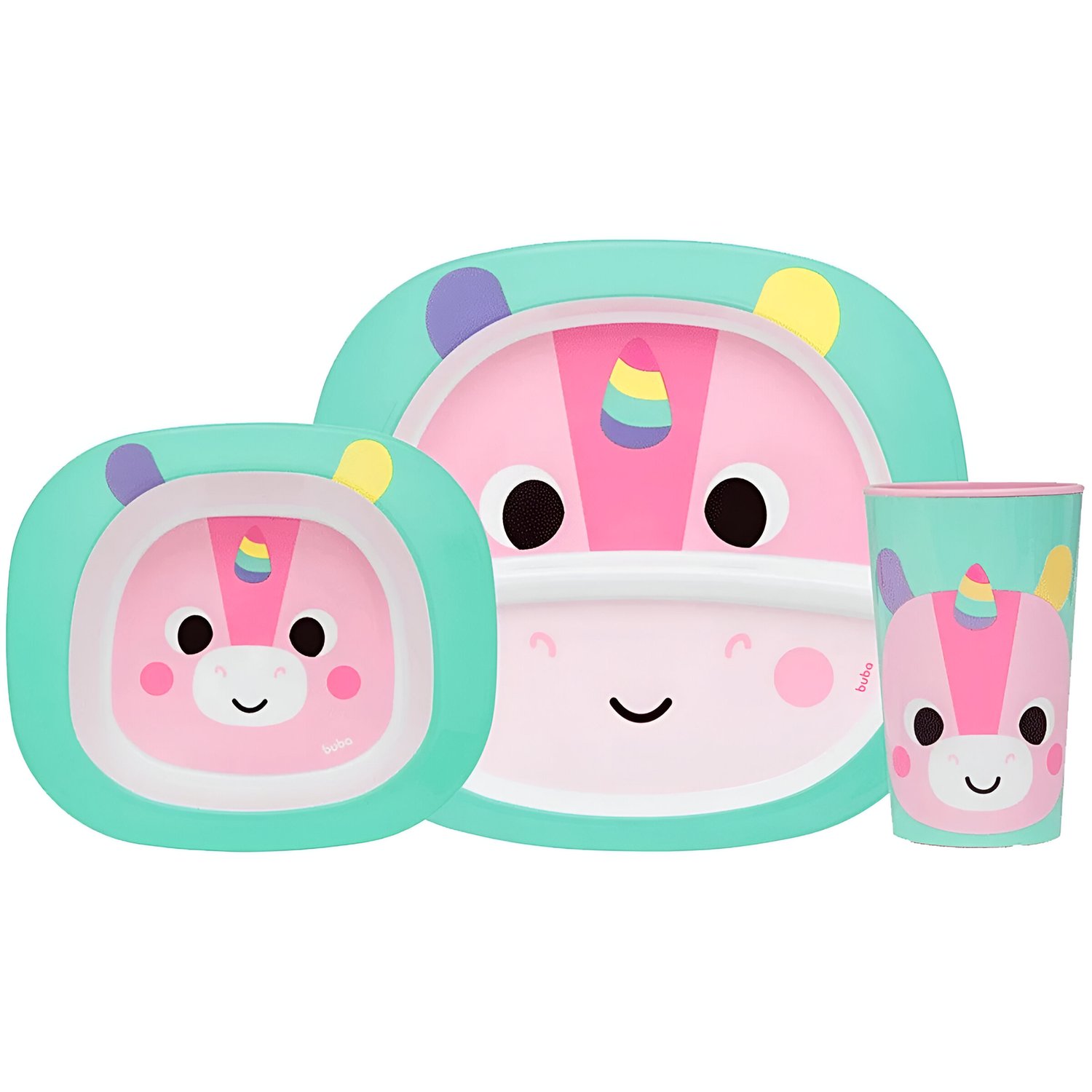 - Prato com Divisórias, Bowl e Copo: Conjunto completo para uma refeição organizada.