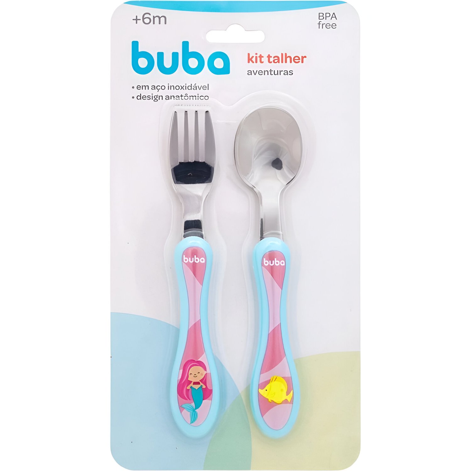Transforme a hora da papinha em um momento mais divertido com o Kit Talher Aventuras da Buba! Com cores vibrantes e estampas encantadoras, este conjunto com garfo e colher foi desenvolvido especialmente para estimular a autonomia dos pequenos durante as refeições. Fabricado em aço inox com cabos anatômicos, é perfeito para as mãozinhas infantis. Seguro, resistente e 100% atóxico, o kit é livre de BPA e ftalatos, garantindo mais tranquilidade para os pais e muito mais diversão para os bebês! (Não pode ser fervido ou colocado em micro-ondas e lava-louças.)
