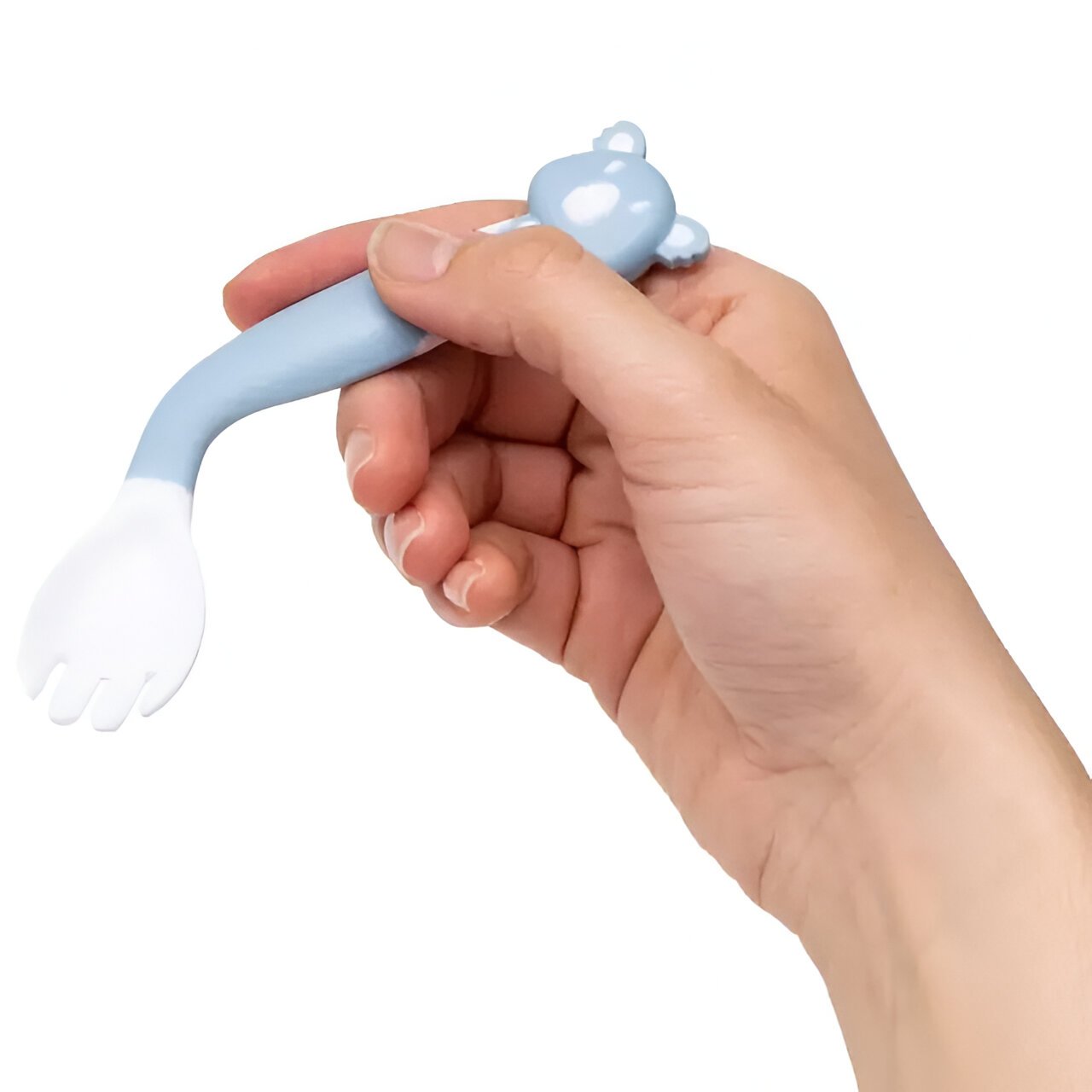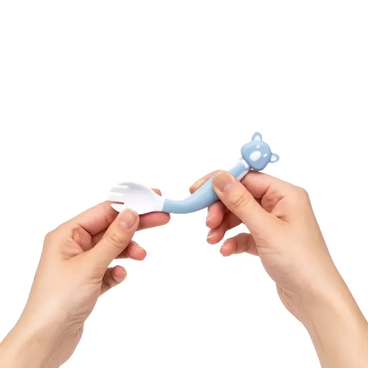 - Talheres Flexíveis: Podem ser dobrados para a direita ou esquerda, oferecendo flexibilidade e conforto ao bebê.