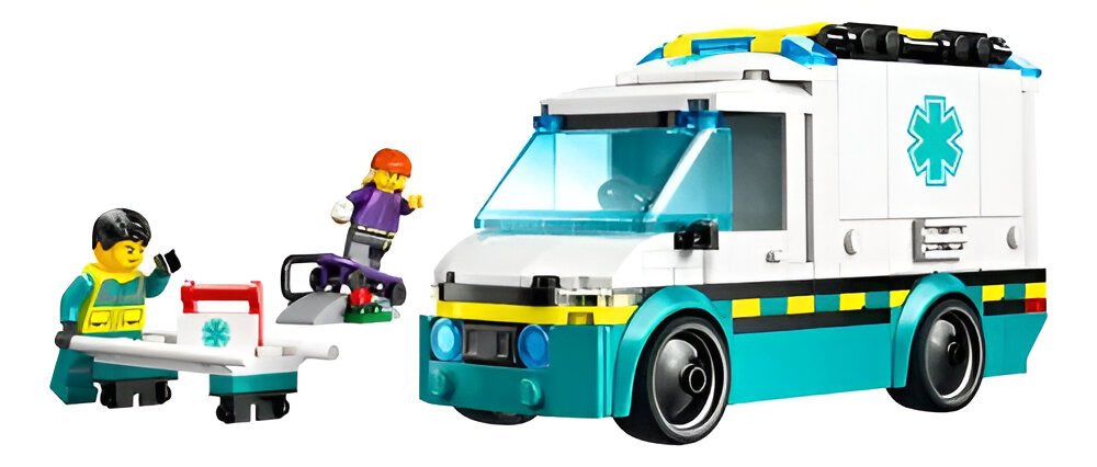 Prepare-se para missões de resgate emocionantes com o LEGO® City Emergency Ambulance (60451)! Ideal para crianças a partir de 5 anos, este conjunto incrível traz uma ambulância de brinquedo detalhada, com painéis laterais dobráveis e portas traseiras que se abrem para acesso rápido à maca e aos equipamentos médicos. Acompanha também um cenário de skate com rampa e minifiguras do skatista e do paramédico para criar histórias de aventura e cuidado.