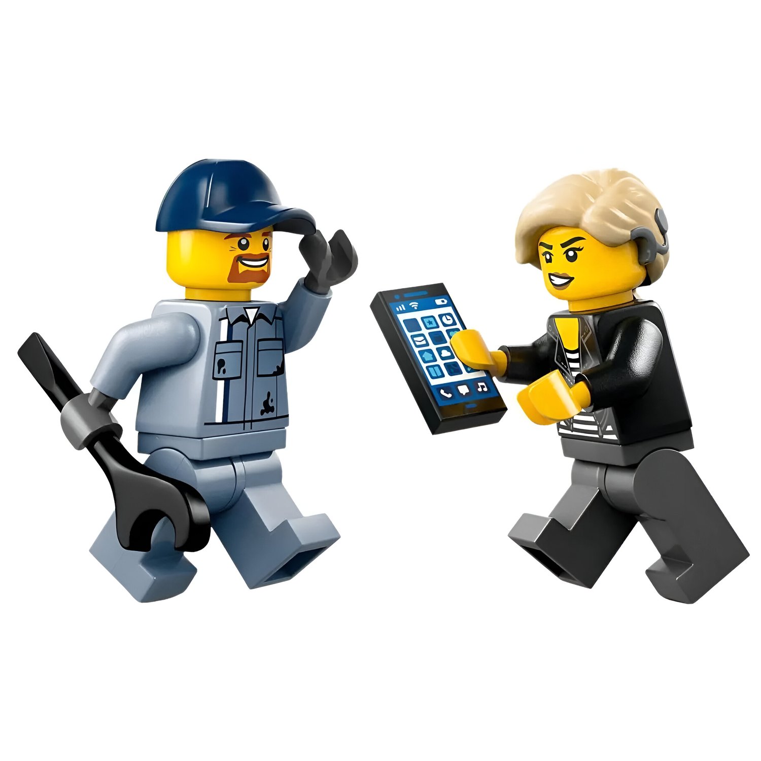 - Minifiguras de motorista de caminhão e motorista do carro esportivo.