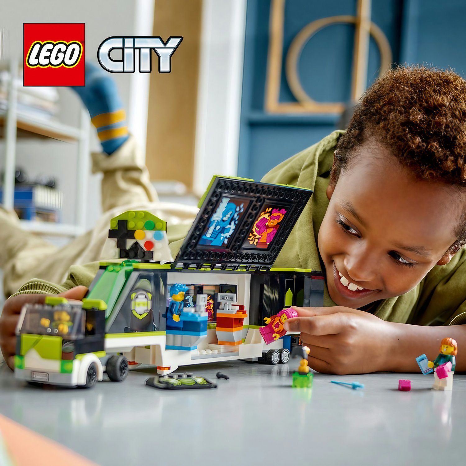 Prepare-se para experiências de jogo imaginativas com o Lego City Caminhão de Torneio de Videogame (60388), um conjunto repleto de recursos emocionantes. Ao abrir o trailer, um palco é revelado, equipado com 2 estações de jogos de computador de brinquedo e uma tela de estádio com funcionalidade divertida de 'animação'. O conjunto inclui um troféu de vencedor e mercadorias incríveis para os fãs de eSport da Lego City. Adicione as minifiguras do apresentador e do jogo, e deixe o torneio começar!