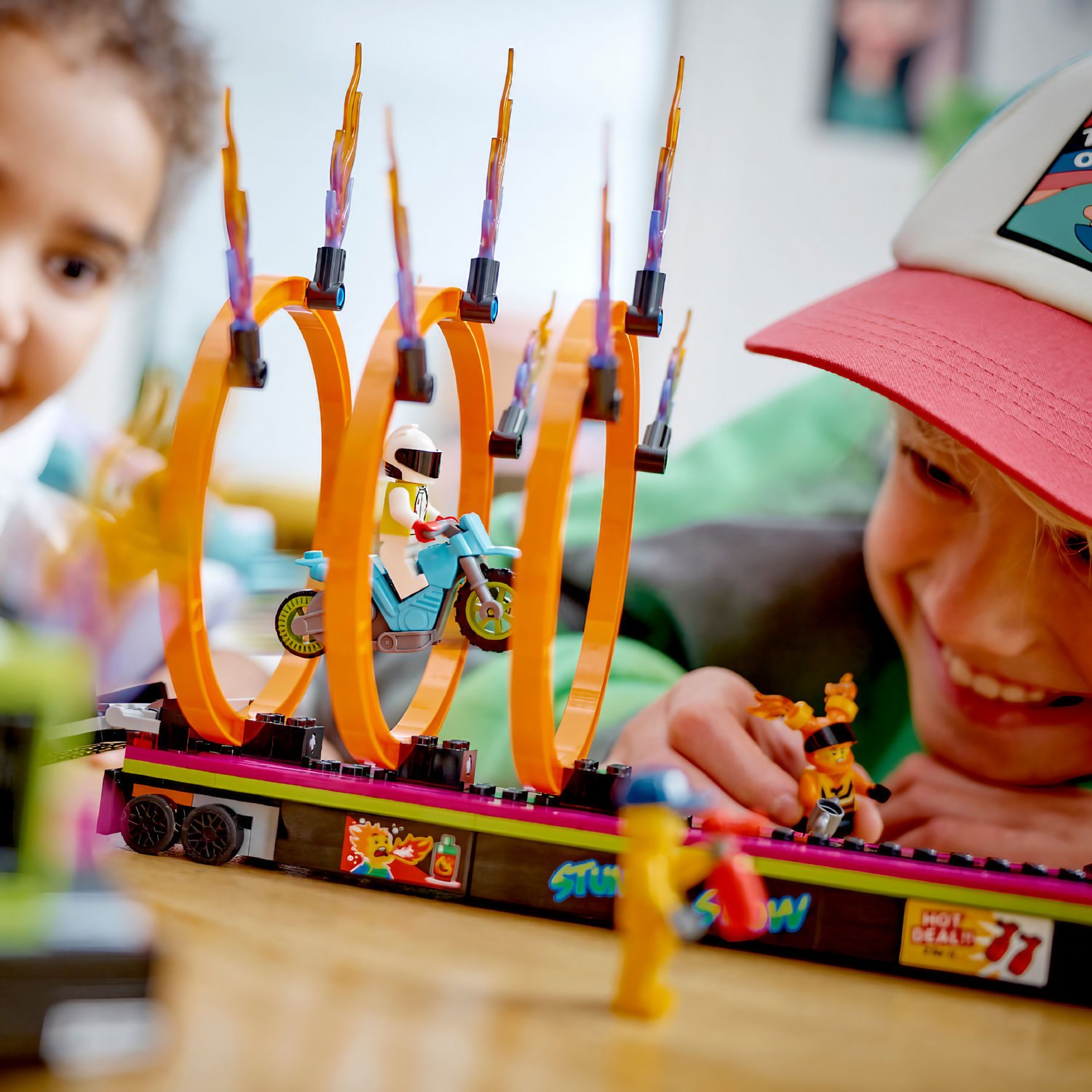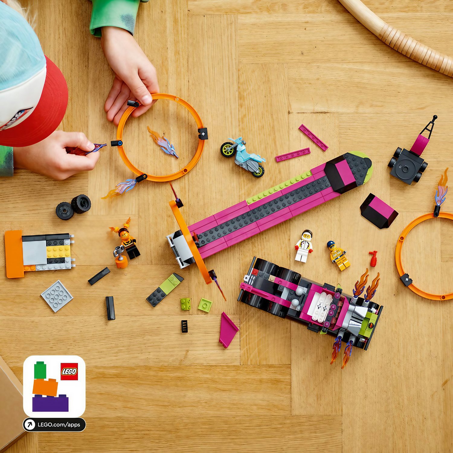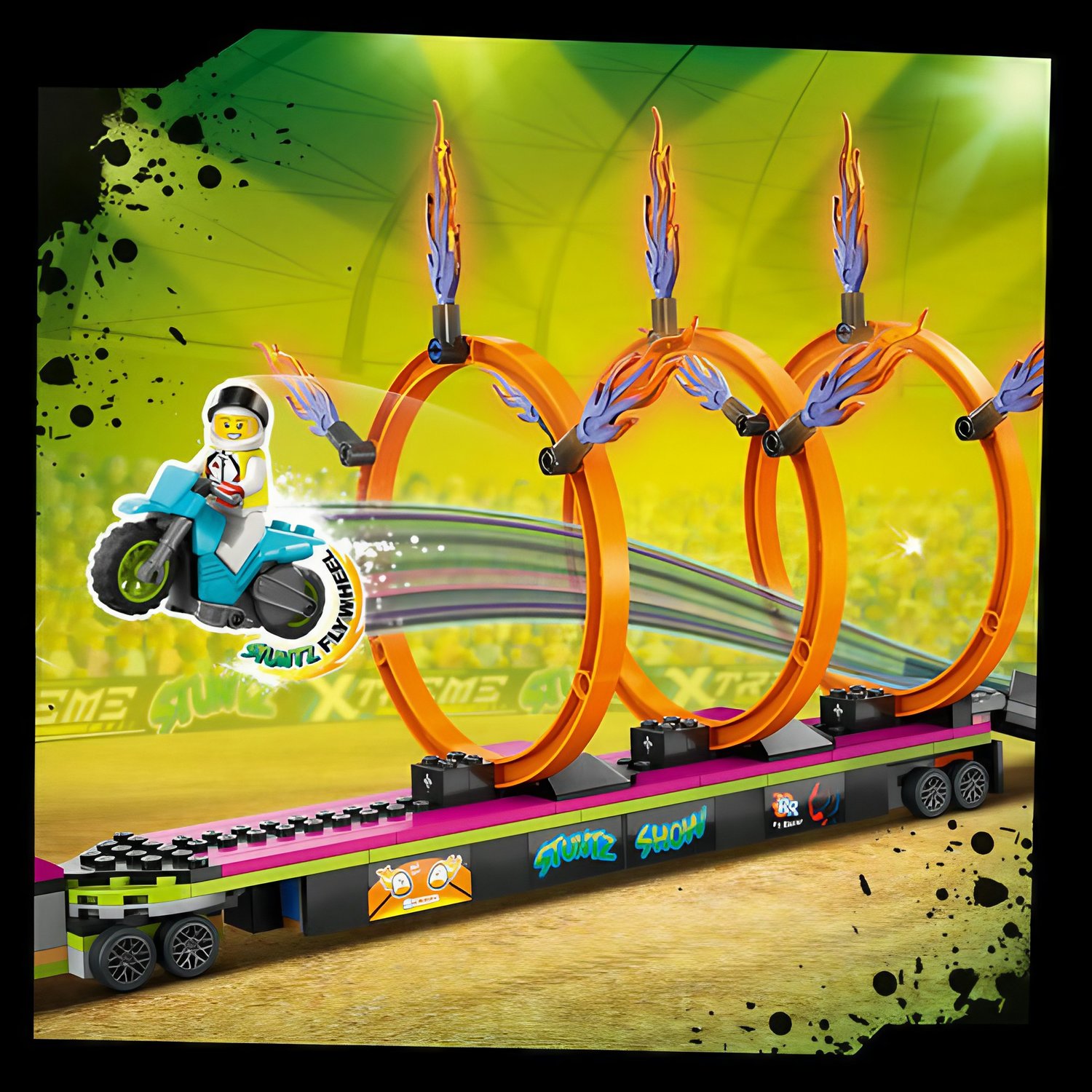 Traga o espetáculo para a cidade com o Lego City Stuntz Caminhão de Acrobacias e Desafio do Anel de Fogo (60357). Este conjunto de ação, destinado a maiores de 6 anos, apresenta um caminhão impressionante com escapamento flamejante, além de um trailer de plataforma com uma rampa de lançamento dobrável e 3 anéis de fogo ajustáveis. Adicione a isso uma motocicleta de acrobacias com roda de inércia e as minifiguras de um motorista de caminhão e 2 pilotos Stuntz para garantir horas de brincadeiras repletas de ação.