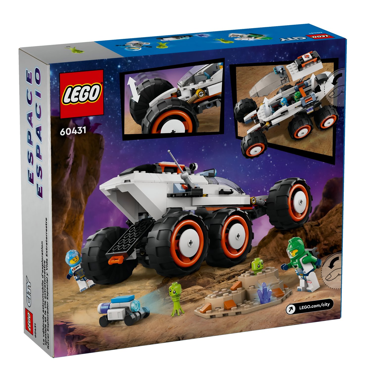 - Inclui 2 minifiguras da tripulação espacial, um robô e um alienígena.