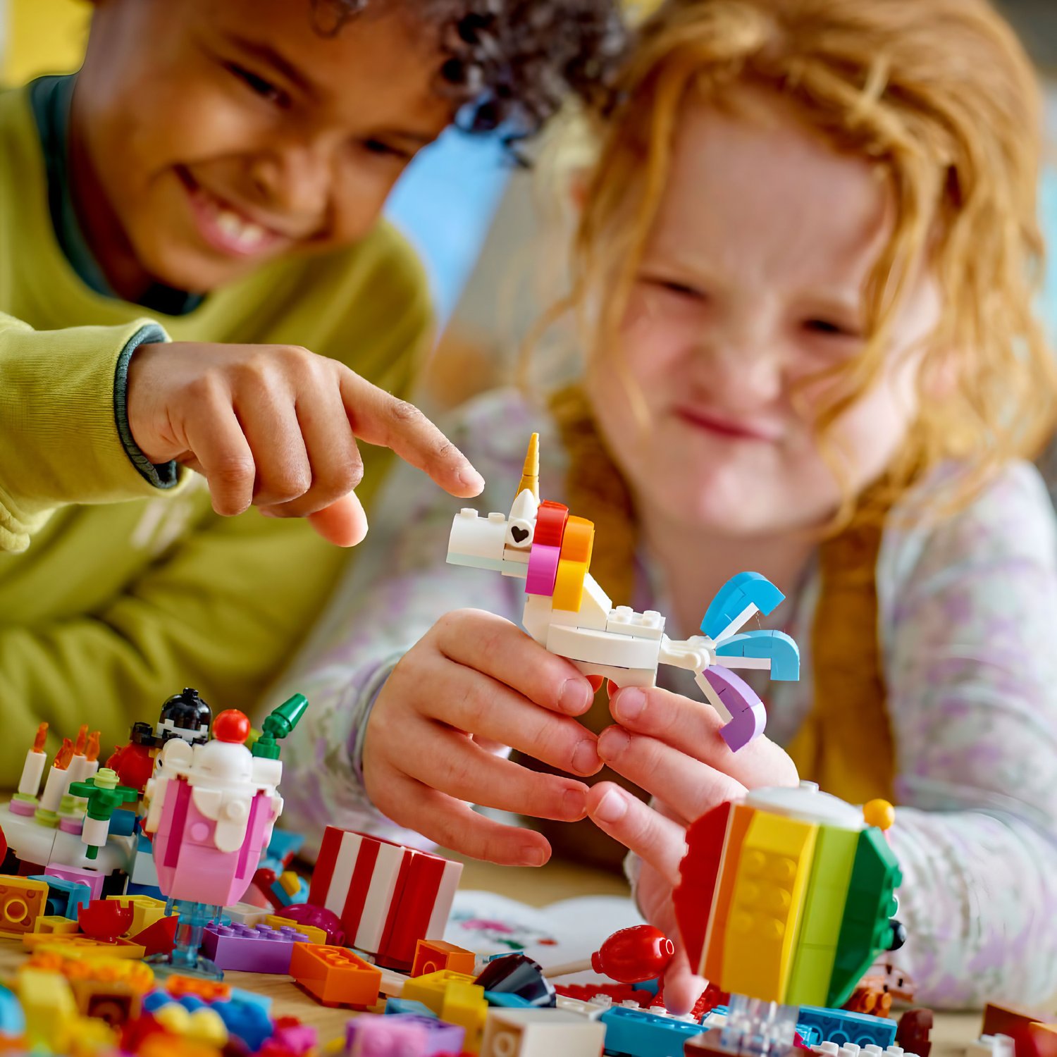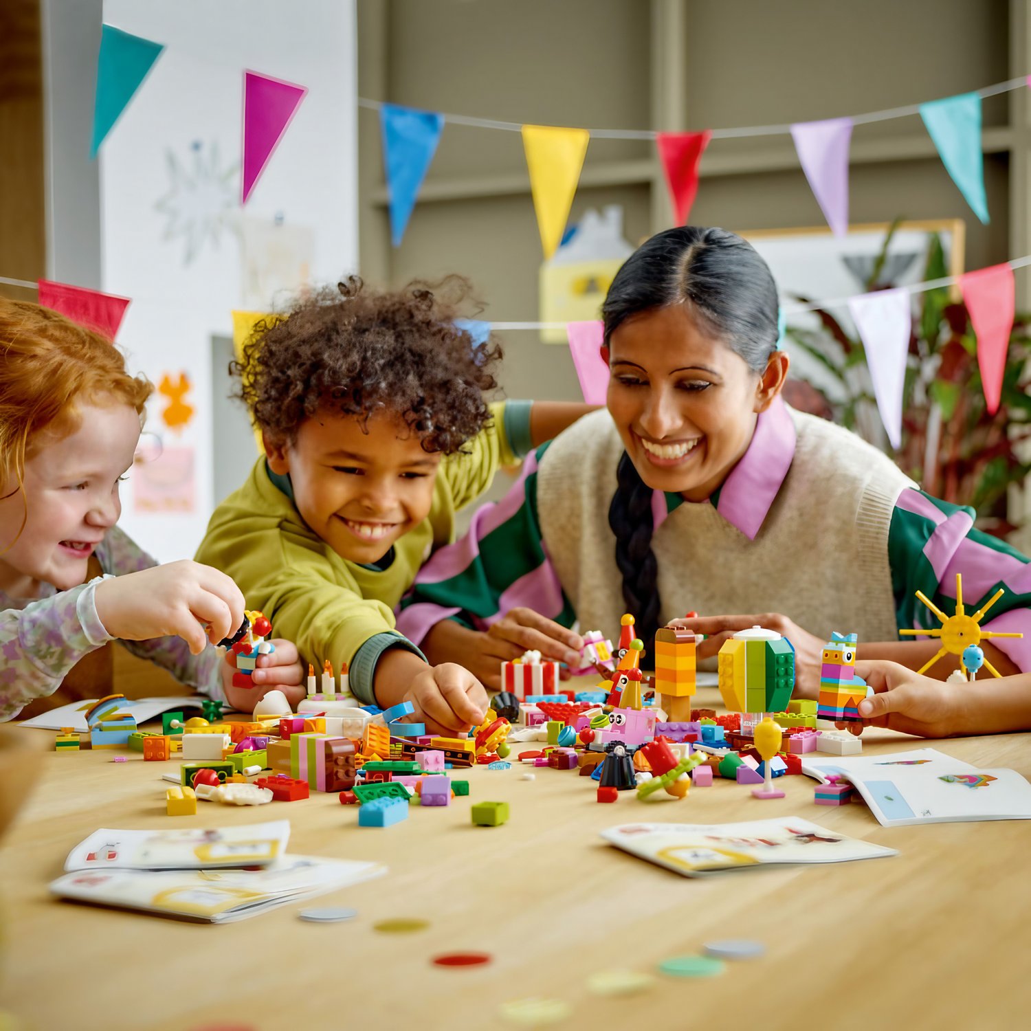 A Lego Classic Caixa de Festa Criativa (11029) é a escolha perfeita para juntar amigos e família em atividades de construção divertidas. Projetada para maiores de 5 anos, esta vibrante caixa de festa oferece uma experiência de brincadeira compartilhada. Com 900 peças coloridas, a diversão criativa é garantida. As peças estão organizadas em 6 embalagens, cada uma contendo peças e instruções de construção impressas para criar 2 modelos fáceis de construir cada. Entre os modelos estão um ursinho, um palhaço, um unicórnio, uma pinhata, um arco-íris, um bolo, pipoca, balões e pequenos presentes, proporcionando uma ótima atividade em grupo para qualquer celebração.
