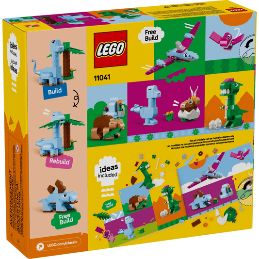 Explore um mundo pré-histórico de criatividade com o LEGO® Classic Dinossauros Criativos (11041)! Ideal para crianças a partir de 5 anos, este brinquedo de montar vem com 450 peças coloridas para construir dinossauros incríveis como T. rex, pterossauro, tricerátopo, brontossauro e até um filhote de T. rex saindo do ovo! Também acompanha um vulcão, uma palmeira e peças especiais para dar expressão aos rostinhos das criaturas, garantindo muita diversão imaginativa.