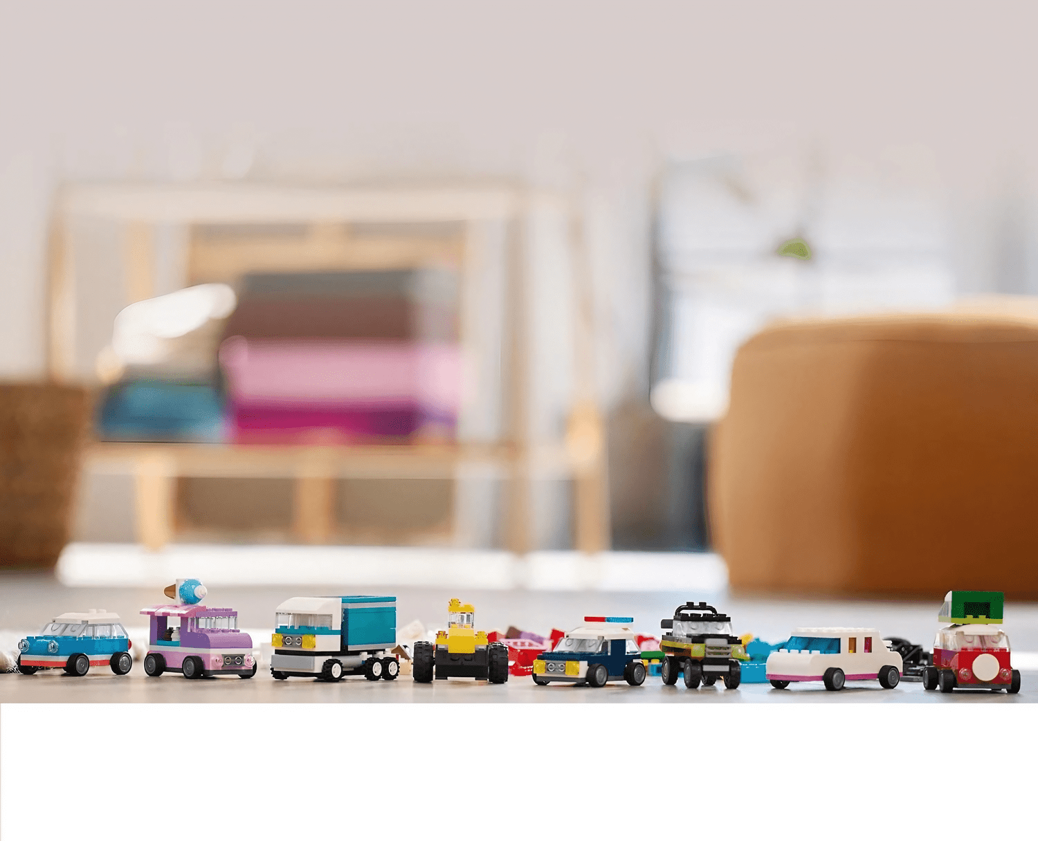 - Mix de Peças: Inclui uma variedade de tijolos e peças para construir diferentes veículos.