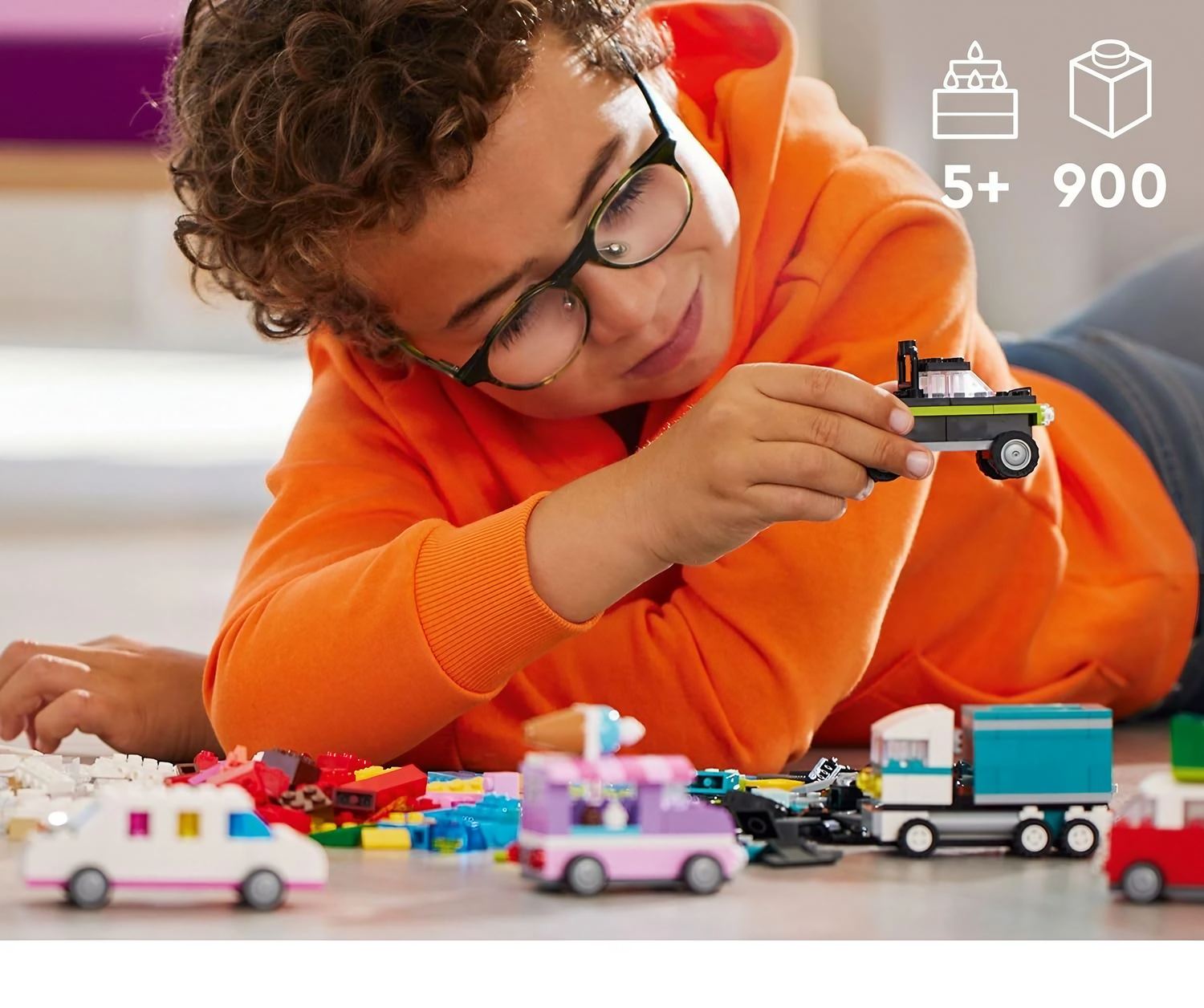 Mime as crianças que gostam de veículos com mais de 5 anos com o conjunto para construir e brincar LEGO® Classic Veículos Criativos. Este colorido kit de construção de carros contém uma mistura de tijolos e peças de construção, além de guias simples para criar um conjunto colorido de veículos infinitamente reconstruíveis.