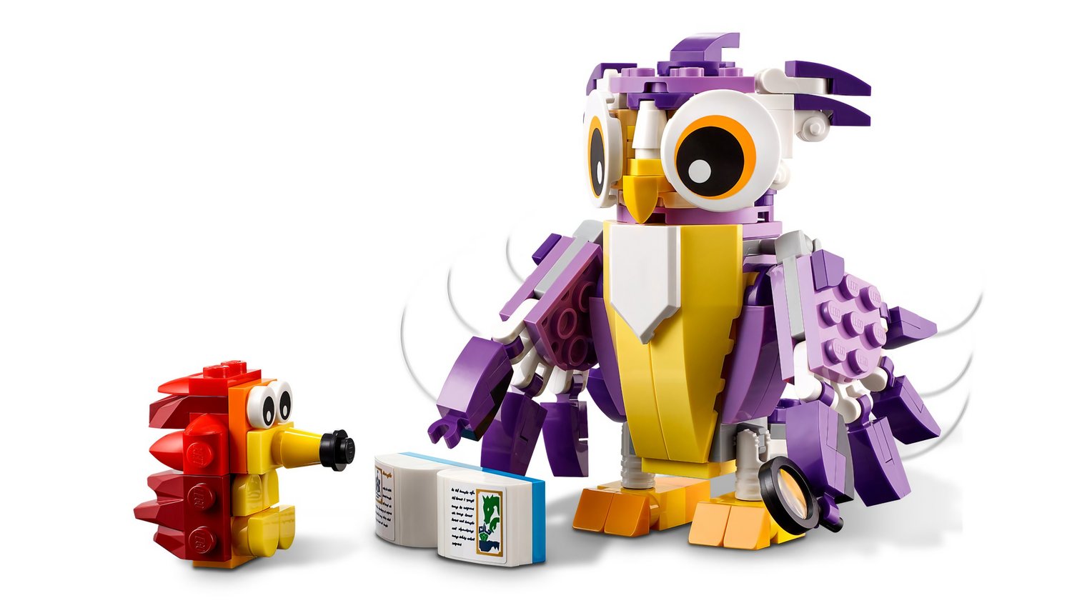 Deixe a magia da floresta encantar as crianças a partir de 7 anos com o Lego Creator 3 em 1 Criaturas da Floresta da Fantasia (31125). Este conjunto super adorável permite que as crianças embarquem em histórias mágicas com criaturas encantadoras. O conjunto inclui uma coruja sábia com cabeça rotativa, cauda, pés, asas e penas ajustáveis, lendo um livro ao lado de um ouriço.