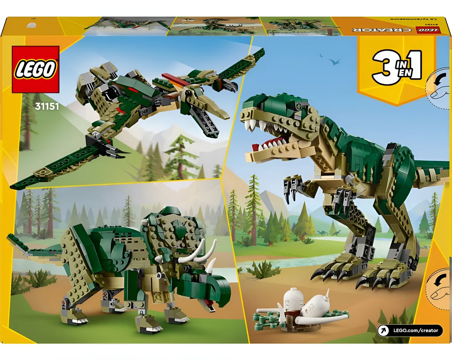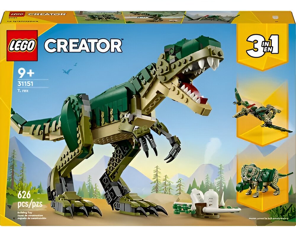 LEGO® Creator 3 em 1 T. rex (31151) é o presente perfeito para meninos e meninas com mais de 9 anos que adoram aventuras jurássicas. Este brinquedo de dinossauro articulado permite criar e brincar com um temido Tyrannosaurus rex, estimulando a imaginação e a criatividade em cada movimento.
