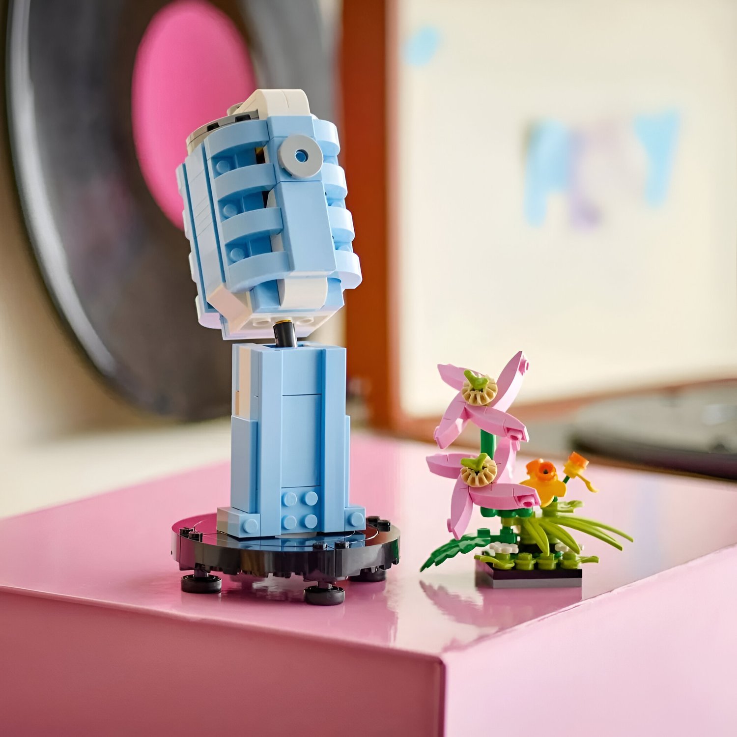 Encante os amantes de música, arte e design com o LEGO® Creator 3 em 1 Toca-discos com Flores (31172)! Este conjunto de brinquedo retrô para crianças a partir de 8 anos apresenta um toca-discos móvel com um braço ajustável, caneta e discos, além de flores removíveis para personalizar ainda mais o visual. Os fãs de LEGO podem escolher entre 3 opções de construção: um toca-discos com flores, um rádio estilo retrô ou um microfone clássico, todos perfeitos para brincadeiras imaginativas ou como itens de decoração coloridos.