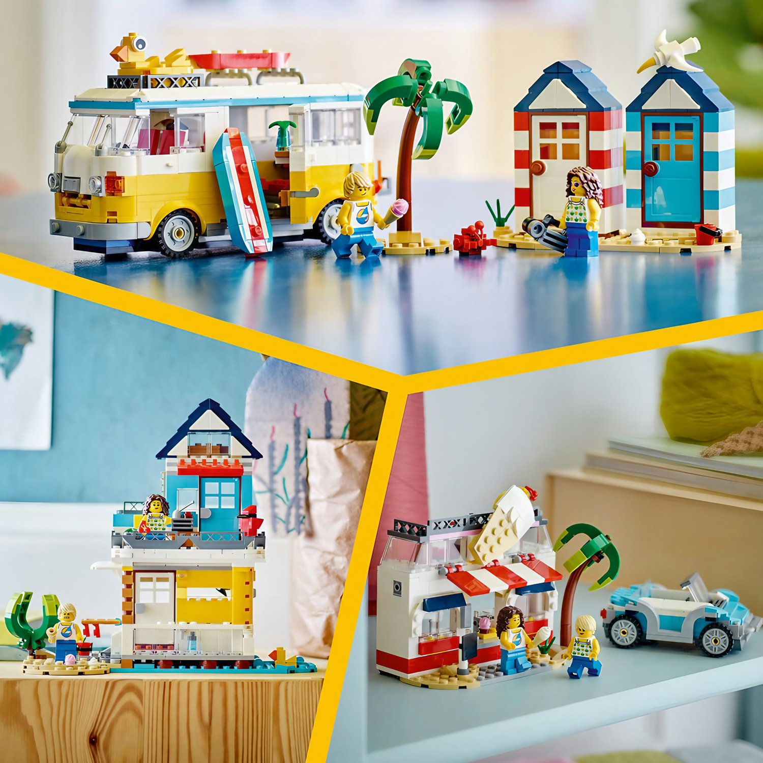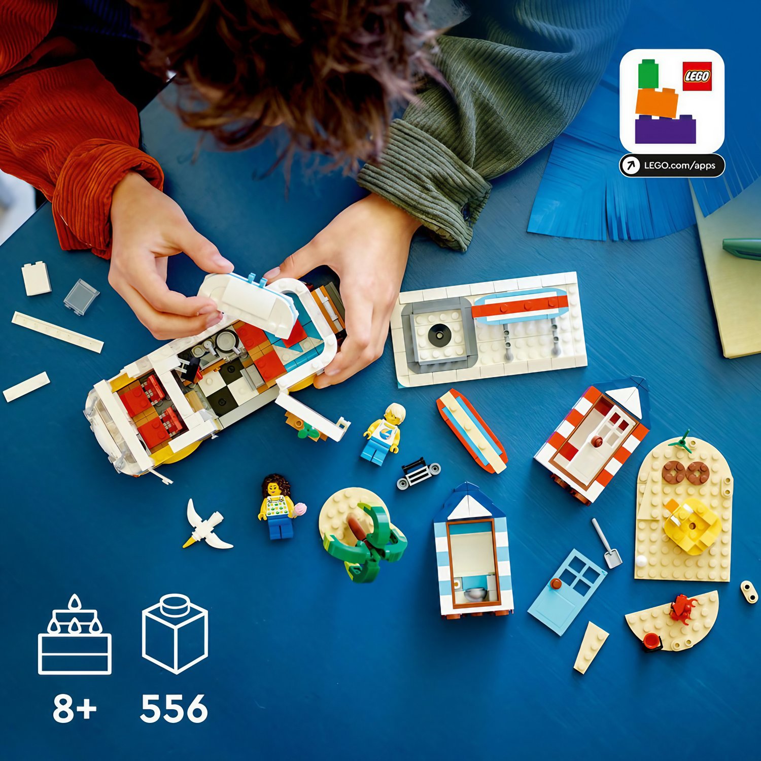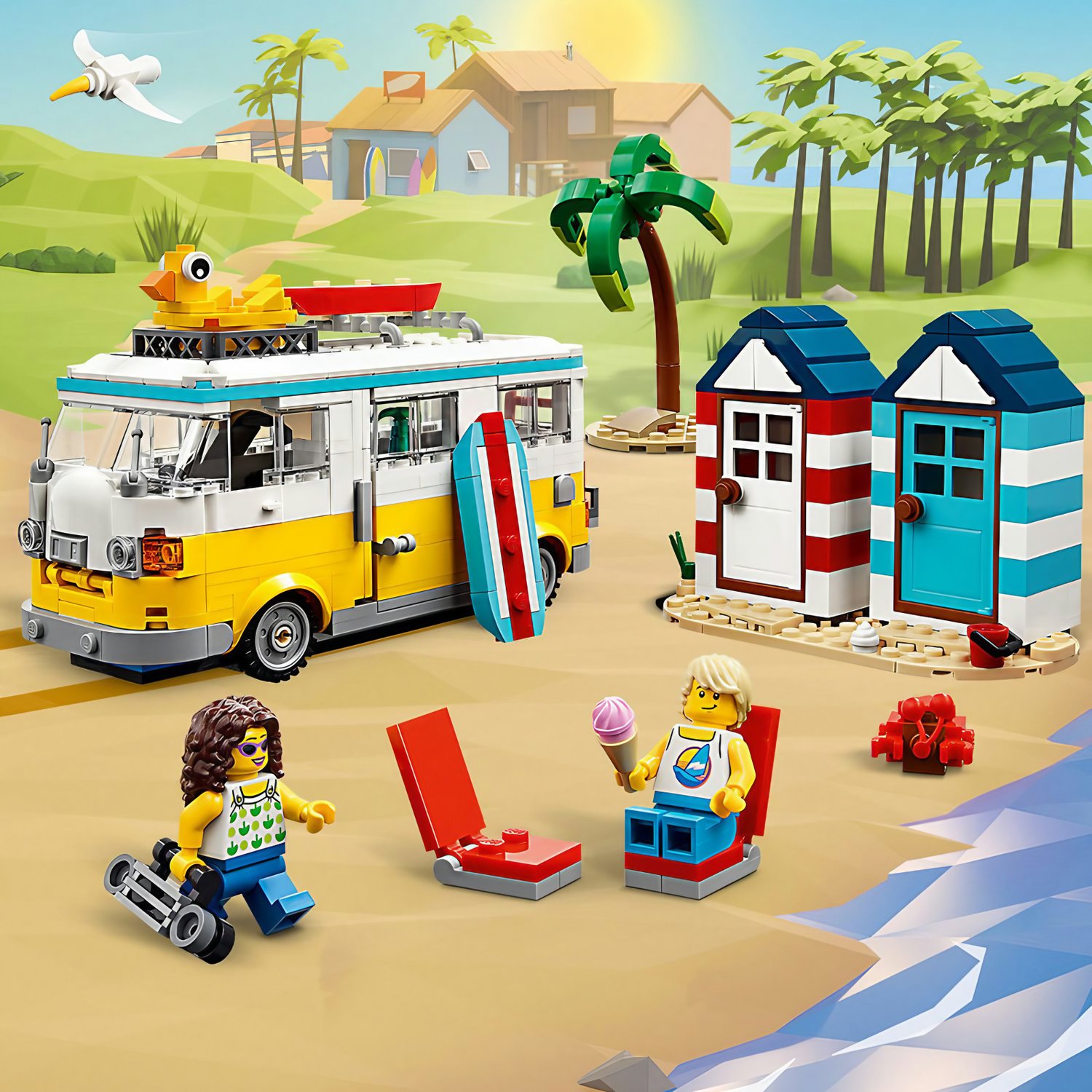 O Lego Creator 3 em 1 Trailer de Praia (31138) é uma experiência deslumbrante para crianças com mais de 8 anos, permitindo a criação de histórias cativantes à beira-mar. Este conjunto inclui um trailer com cozinha e quarto, teto removível, porta lateral que se abre e 2 minifiguras. Além disso, oferece 2 cabanas de praia, uma palmeira, 2 pranchas de surf feitas com peças, um par de espreguiçadeiras e um albatroz.