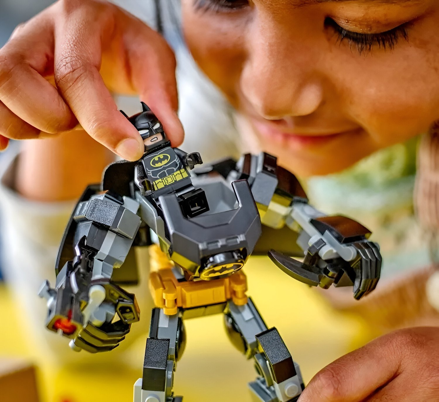 - Minifigura do Batman: Vem com capa de tecido e um Batarang adicional que pode ser guardado no braço direito do robô, pronto para o combate.