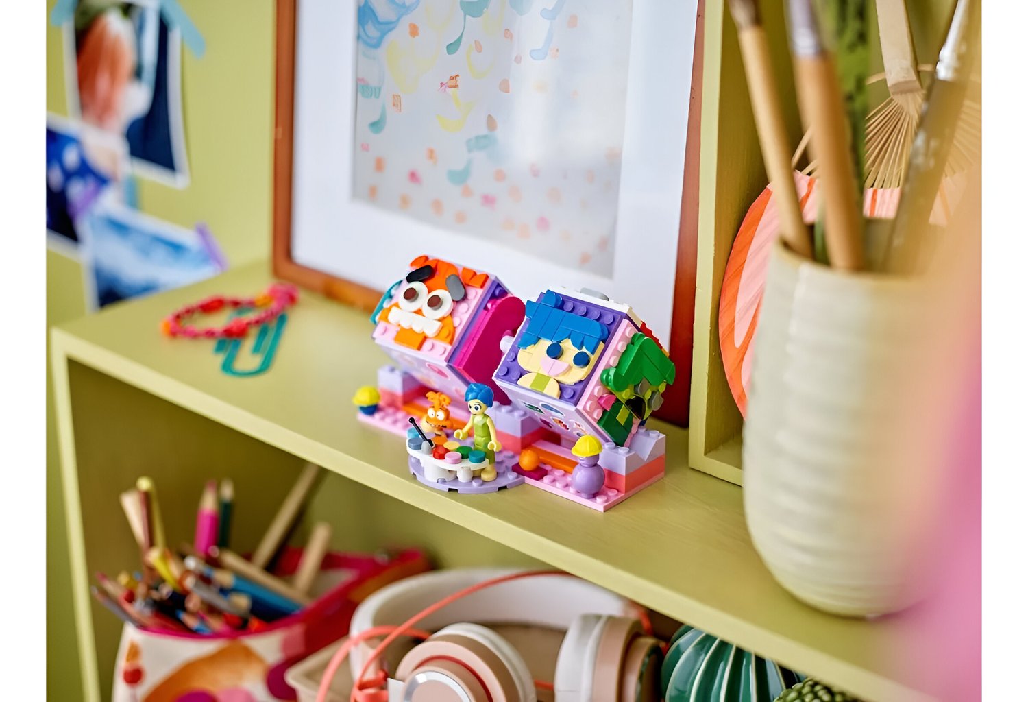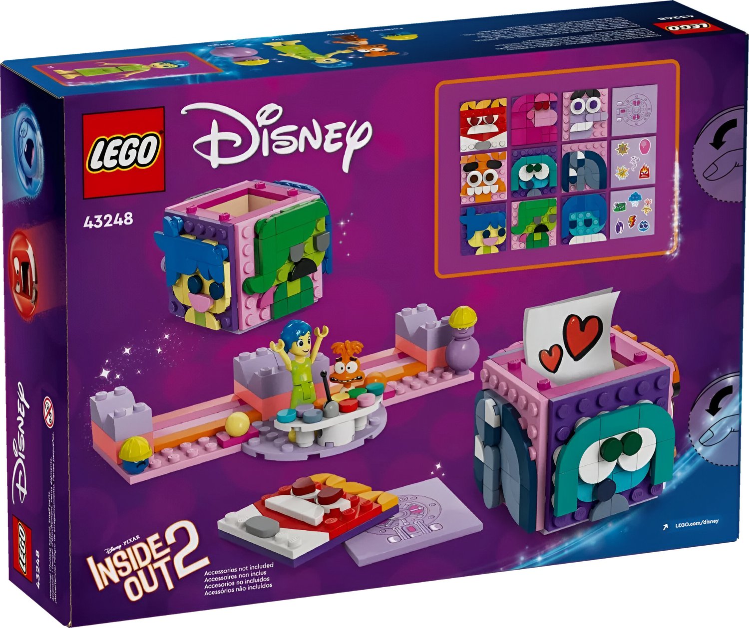- Minibonecas LEGO® Disney de Alegria e Ansiedade, acompanhadas de bolas de memória coloridas.