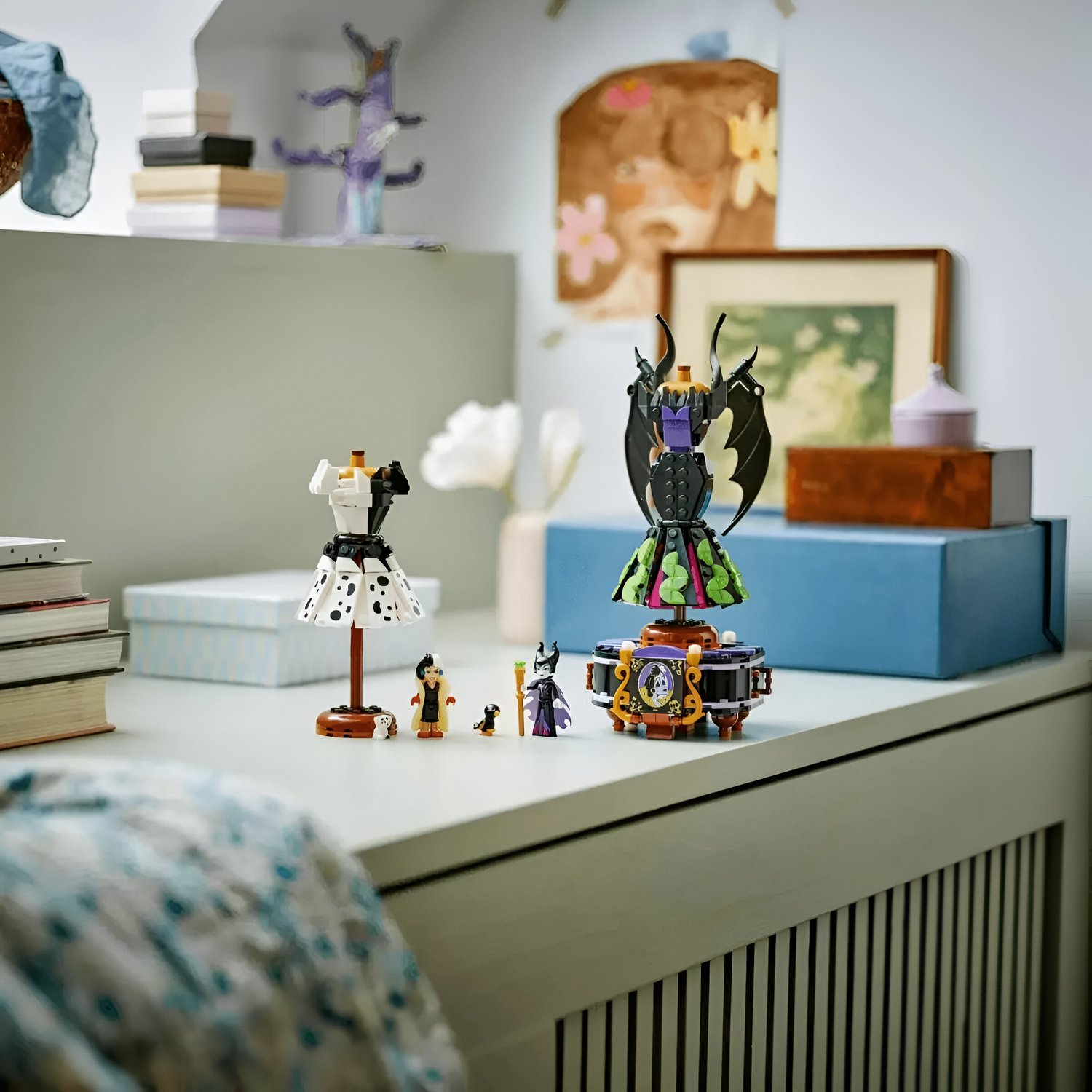 Desperte a criatividade dos fãs da Disney com o incrível LEGO® | Disney Vestidos da Malévola e da Cruella De Vil (43262)! Perfeito para crianças a partir de 9 anos, este conjunto permite montar os icônicos vestidos das vilãs Malévola e Cruella De Vil, além de incluir suportes para vestidos e um suporte de exposição especial com compartimento secreto para personagens e acessórios.