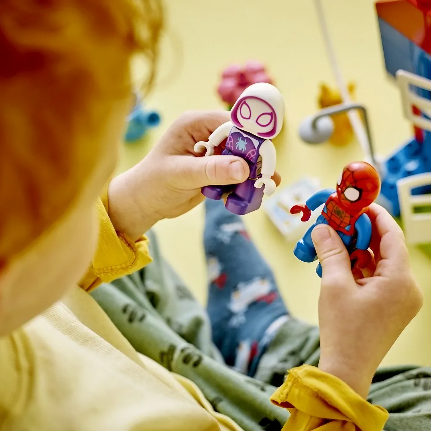 - Personagens Favoritos: Inclui as minifiguras do Spidey, Aranha-Fantasma e Bootsie, o gato.