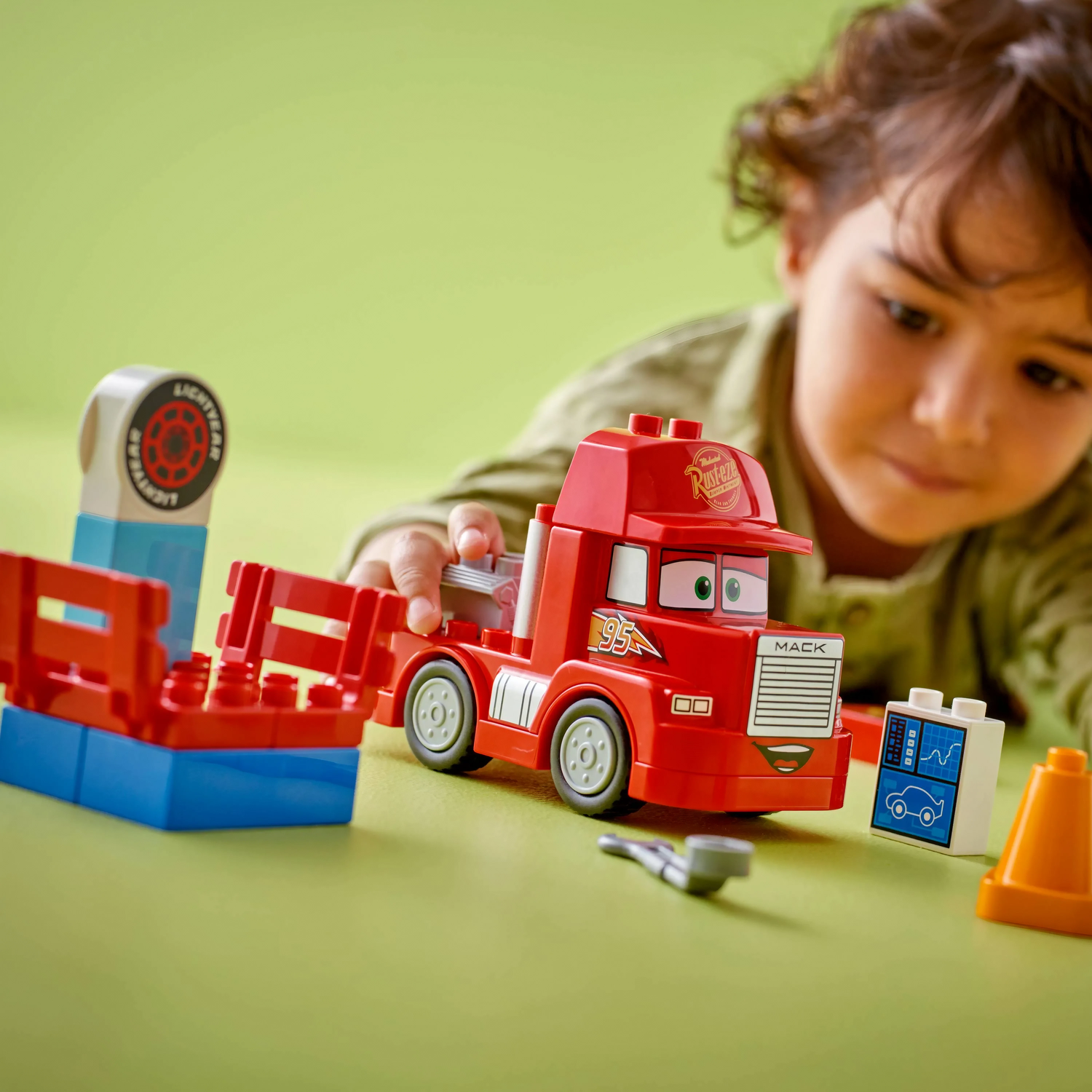 Turbine a hora da brincadeira de fãs de veículos pré-escolares com o emocionante LEGO® DUPLO® - Mack na Corrida! Inspirado nos filmes Carros da Disney e Pixar, este conjunto é ideal para crianças maiores de 2 anos que adoram brincar com veículos e personagens. Ele inclui um grande caminhão vermelho construível, o Mack, que ajuda o Relâmpago McQueen a se preparar para vencer a corrida!