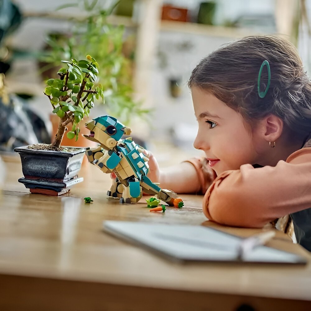 - Construa e brinque com Baby Bumpy! A versão jovem do Ankylosaurus tem mandíbula que abre, pernas articuladas e uma cauda que balança ao mover a cabeça.