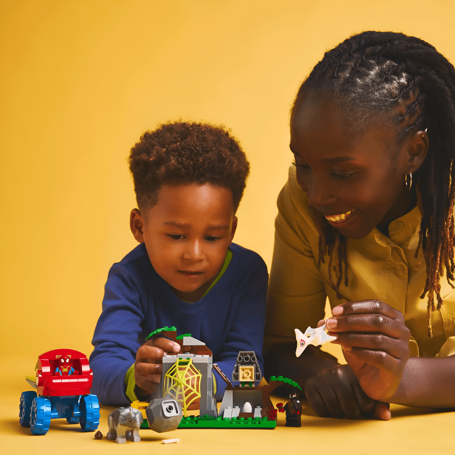 - Aventura com Super-Heróis e Dinossauros: Inclui minifiguras do Spidey, Miles "Spin" Morales e figuras de dinossauros para montar: Ghost-Spider como pterodáctilo e Rhino como tricerátopo.