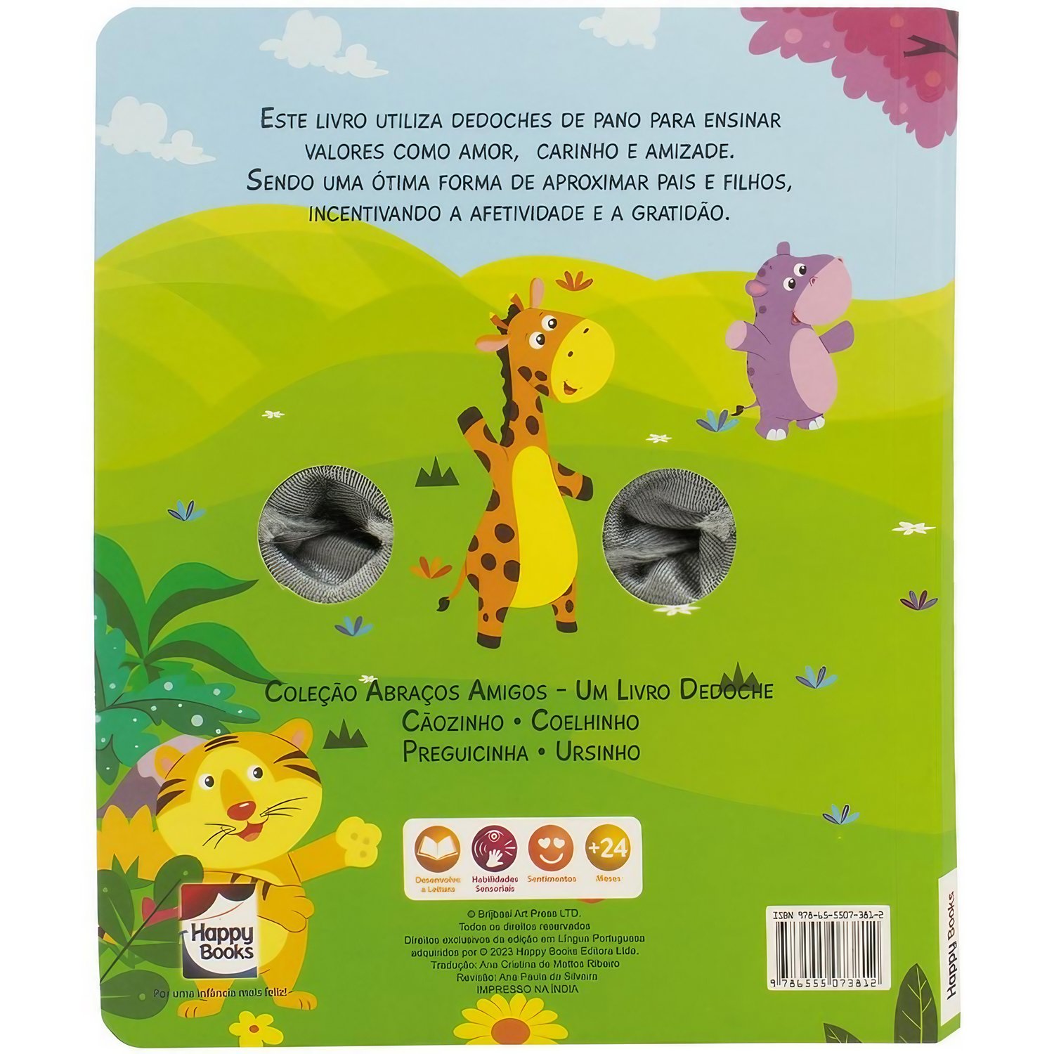 O livro "Abraços Amigos: Um Livro Dedoche Preguicinha" da coleção Happy Books é uma adorável maneira de ensinar valores como amor, carinho e amizade às crianças. Utilizando dedoches de pano, este livro proporciona uma experiência interativa e afetuosa, aproximando pais e filhos enquanto incentivam a expressão de afeto e gratidão.