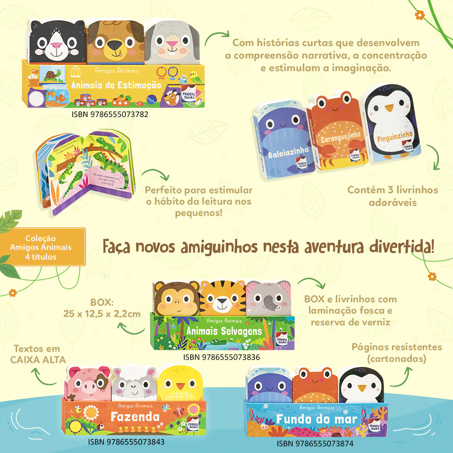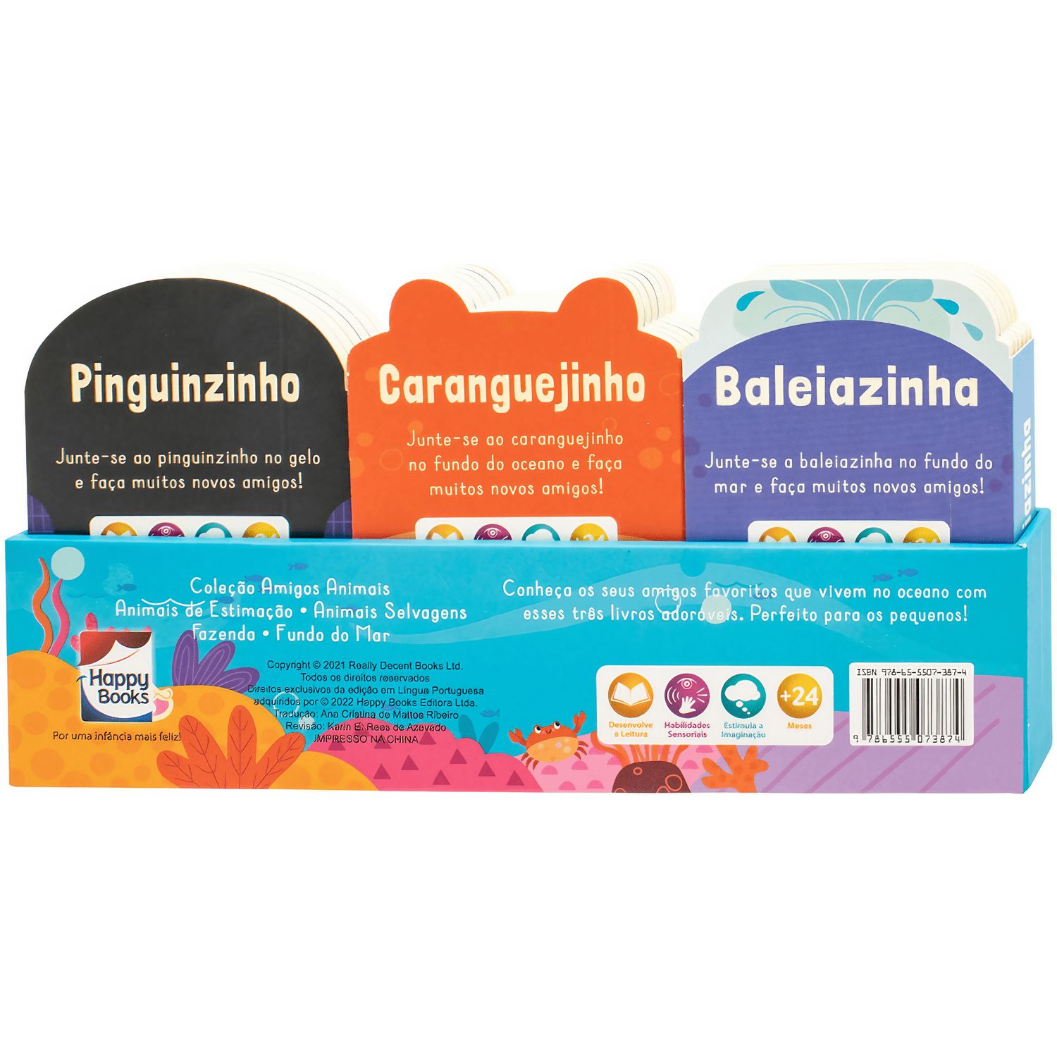Coleção Amigos Animais: Esta coleção encantadora apresenta os amigos do fundo do mar em três livros cartonados, proporcionando uma jornada emocionante pelo mundo marinho.