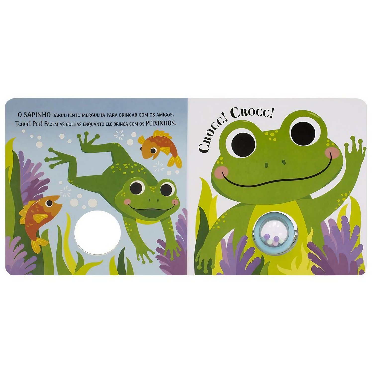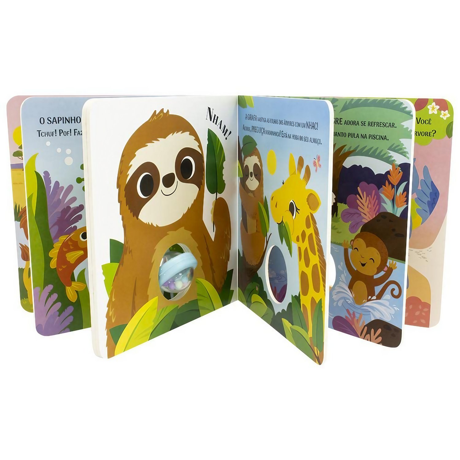 Acabamento Especial: Possui capa cartonada com bordas arredondadas para maior segurança e um chocalho embutido que adiciona diversão extra à leitura.