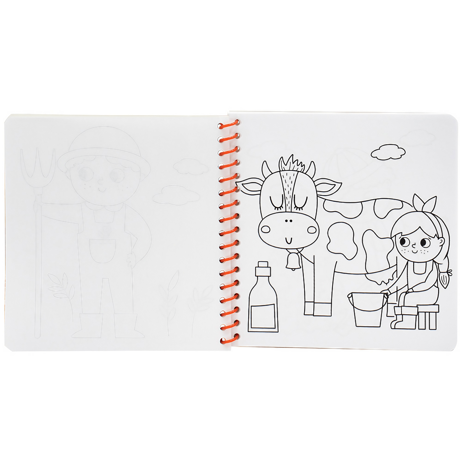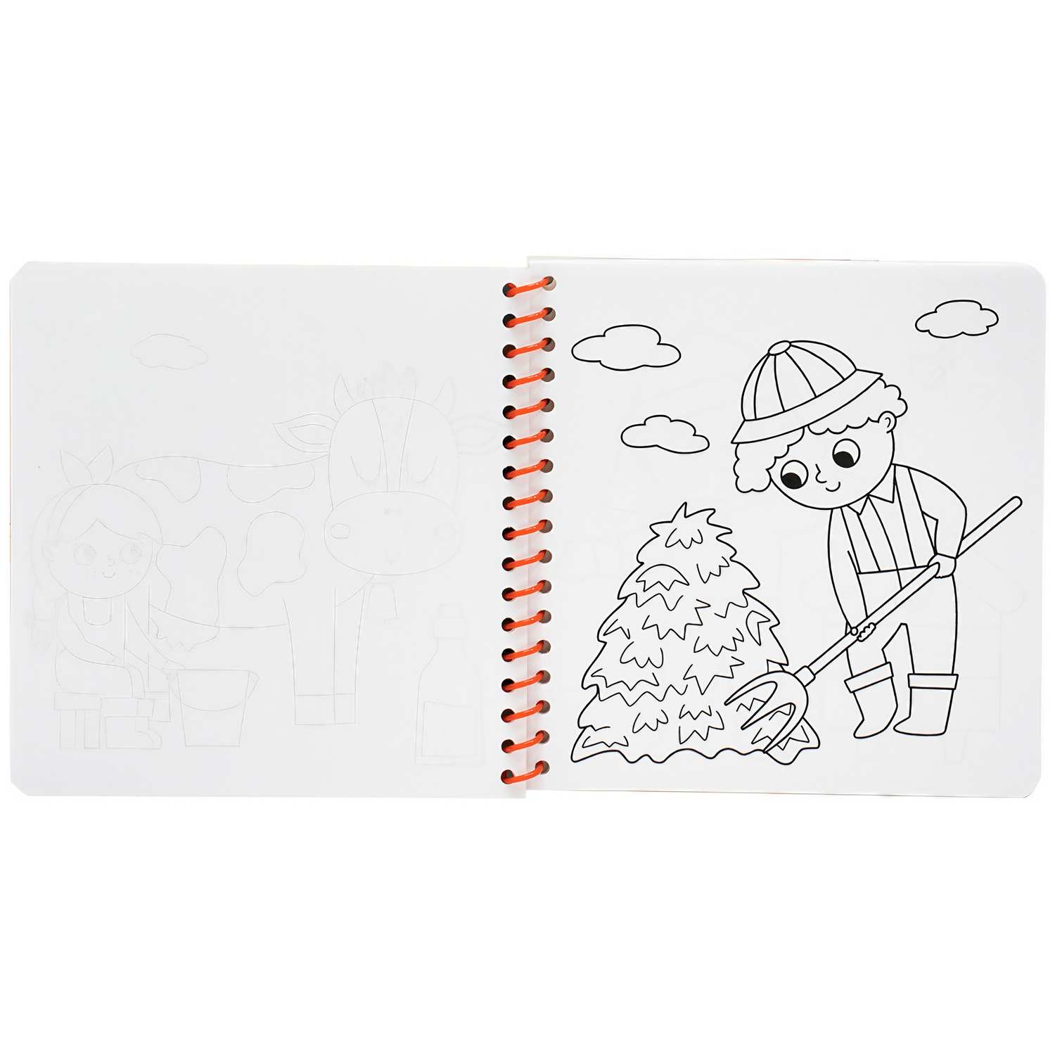 Atividades Criativas: Este livro-kit incentiva as crianças a praticar seus primeiros traços com base em elementos encontrados em uma fazenda, como animais e plantas.