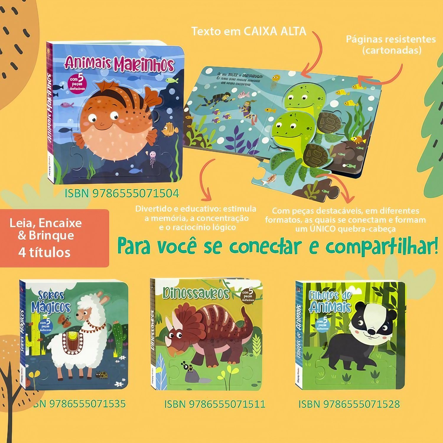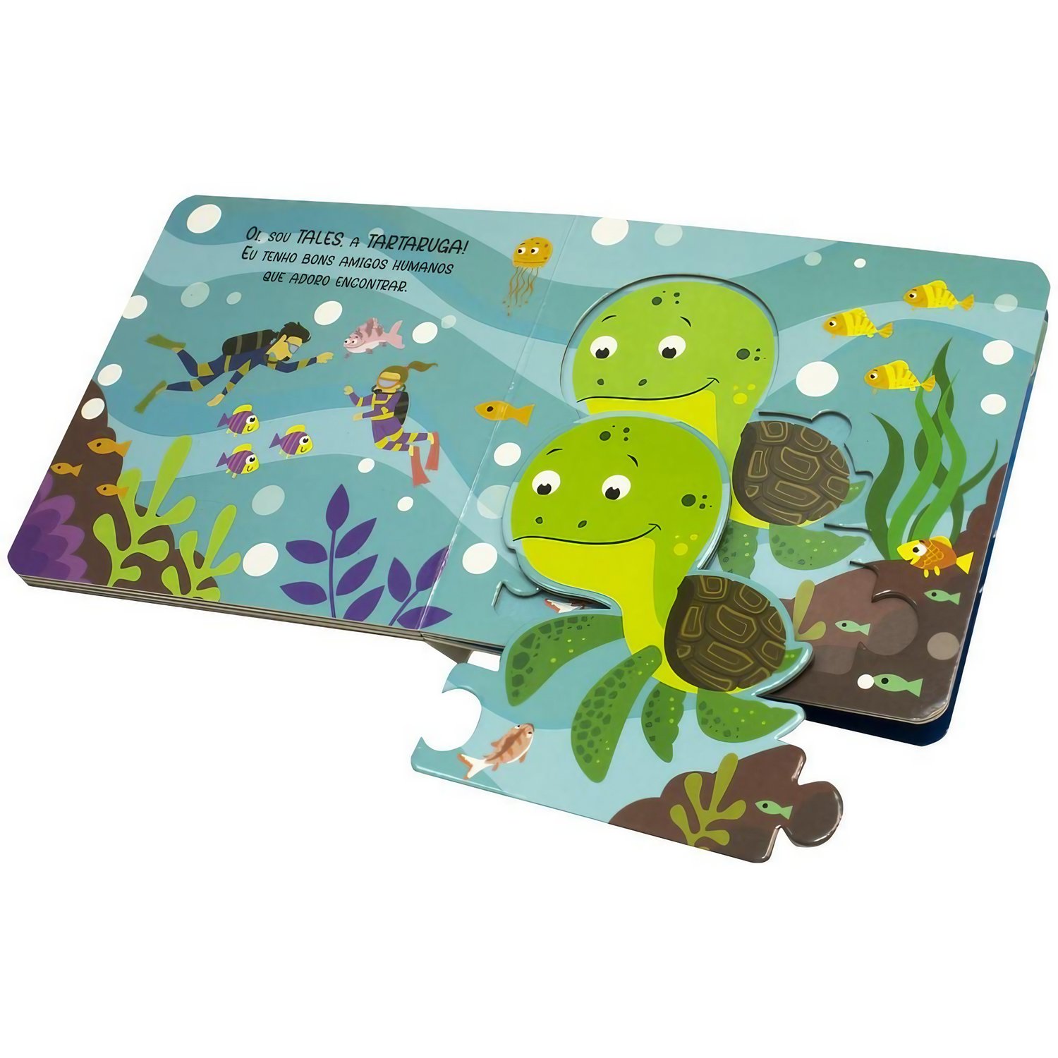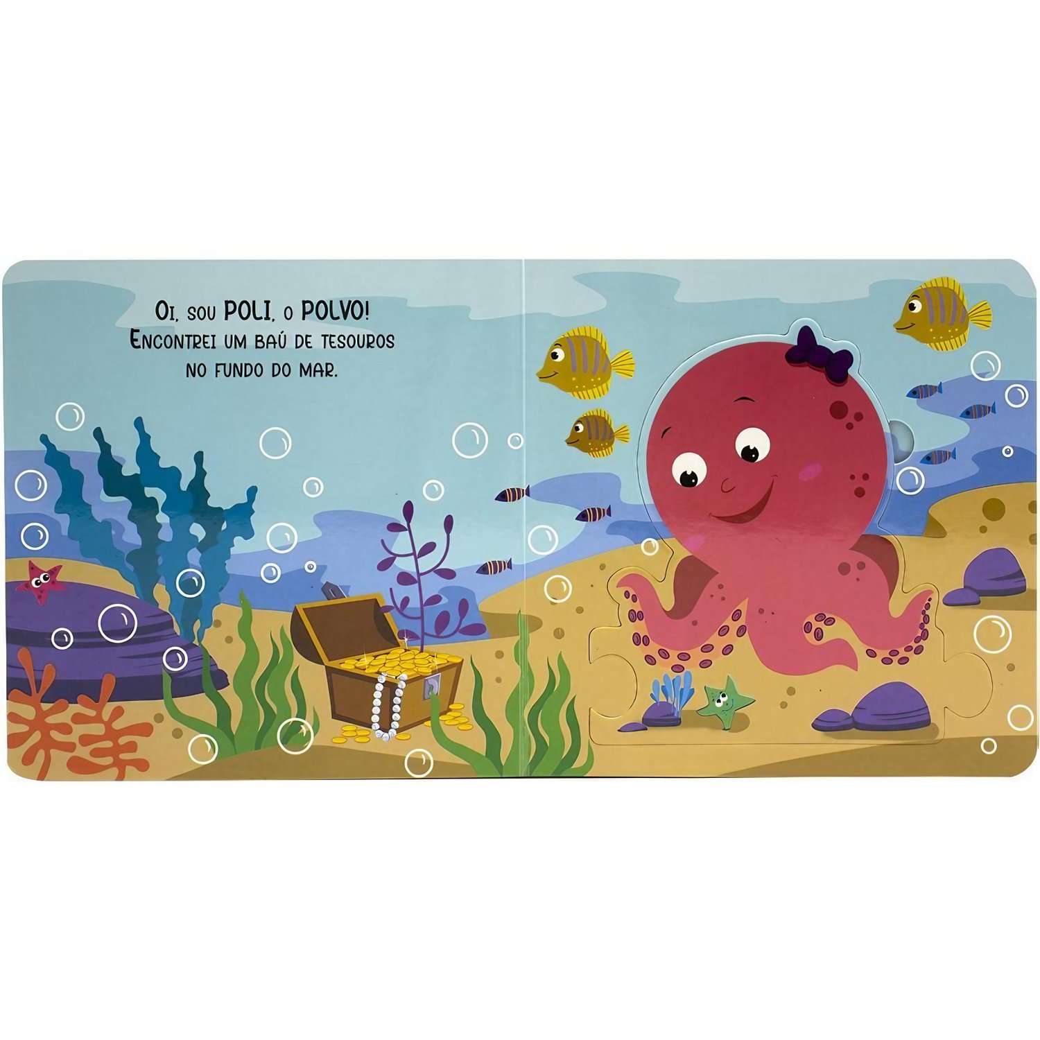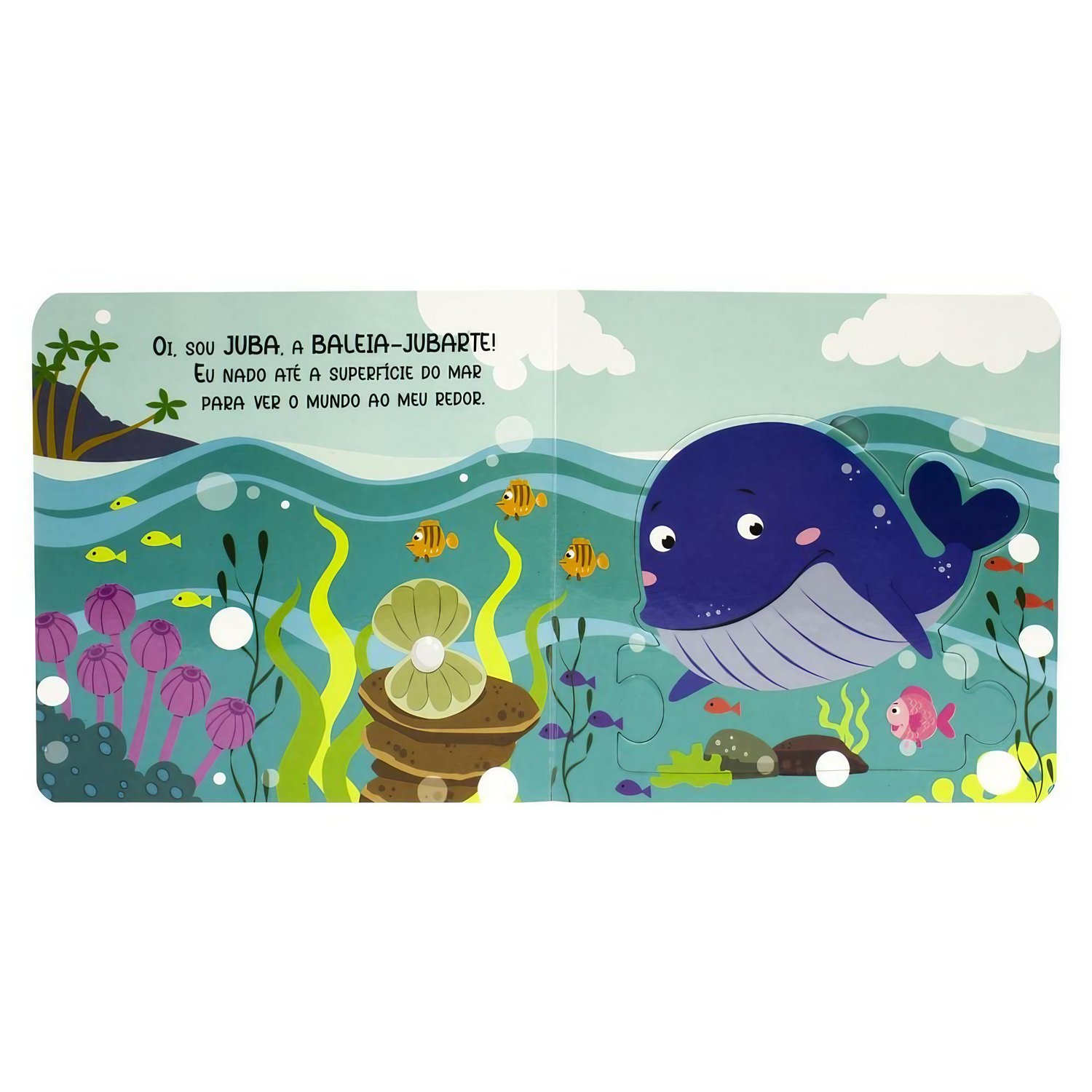 Peças Destacáveis: Cada página apresenta peças destacáveis que as crianças podem encaixar para formar um quebra-cabeça de animais marinhos, como golfinhos, tartarugas, polvos e muito mais.