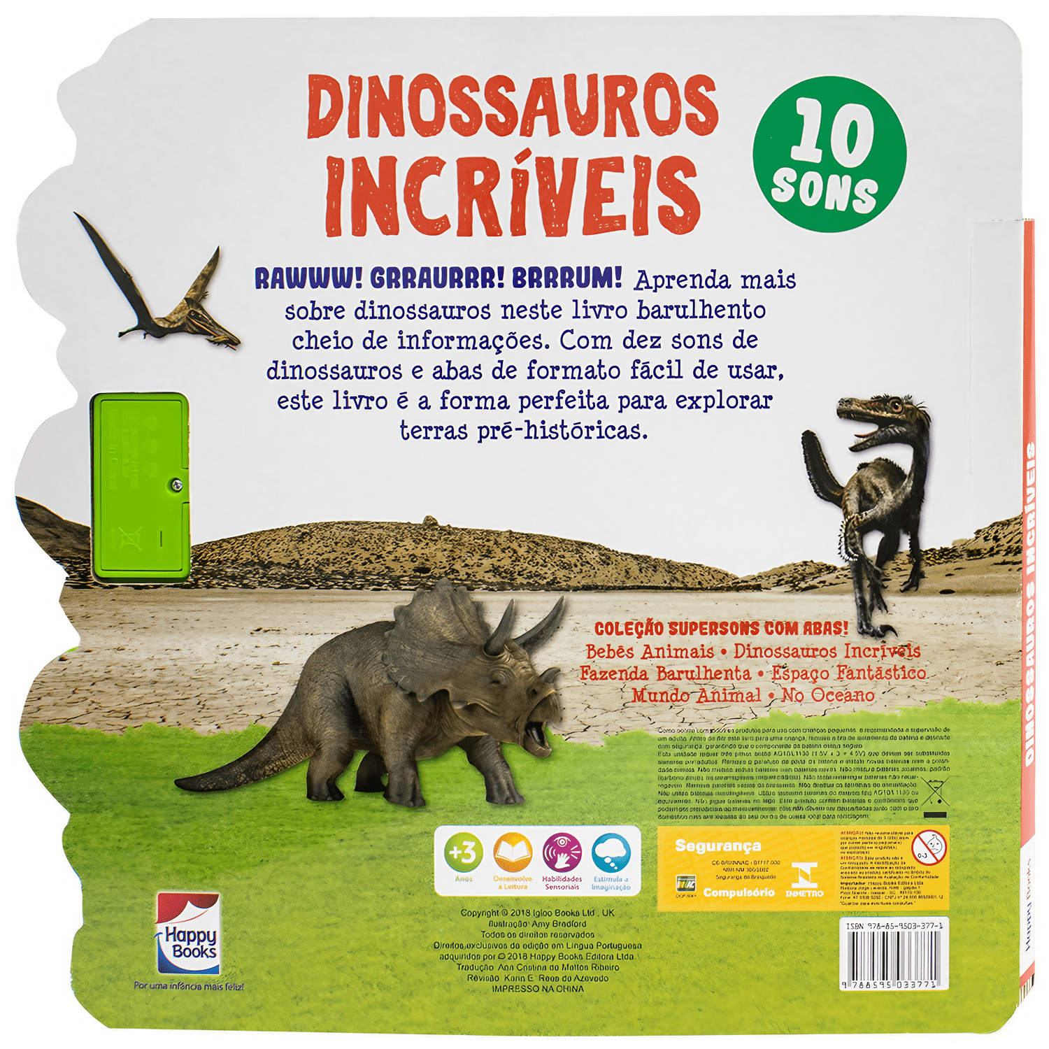Formato Livros com Som: Com dimensões de 27,7x27,4 cm, este livro apresenta um formato robusto e cativante. Cada página é repleta de ilustrações vibrantes e informações educativas sobre os temíveis dinossauros, complementadas por módulos sonoros que trazem os sons autênticos dessas criaturas pré-históricas à vida.