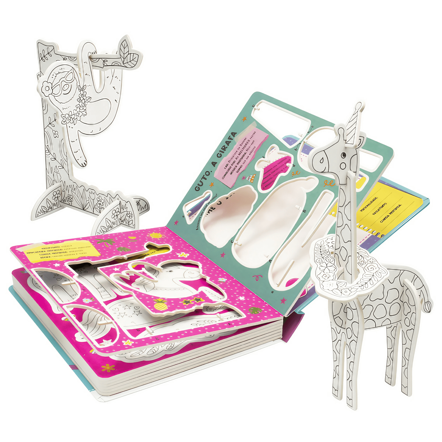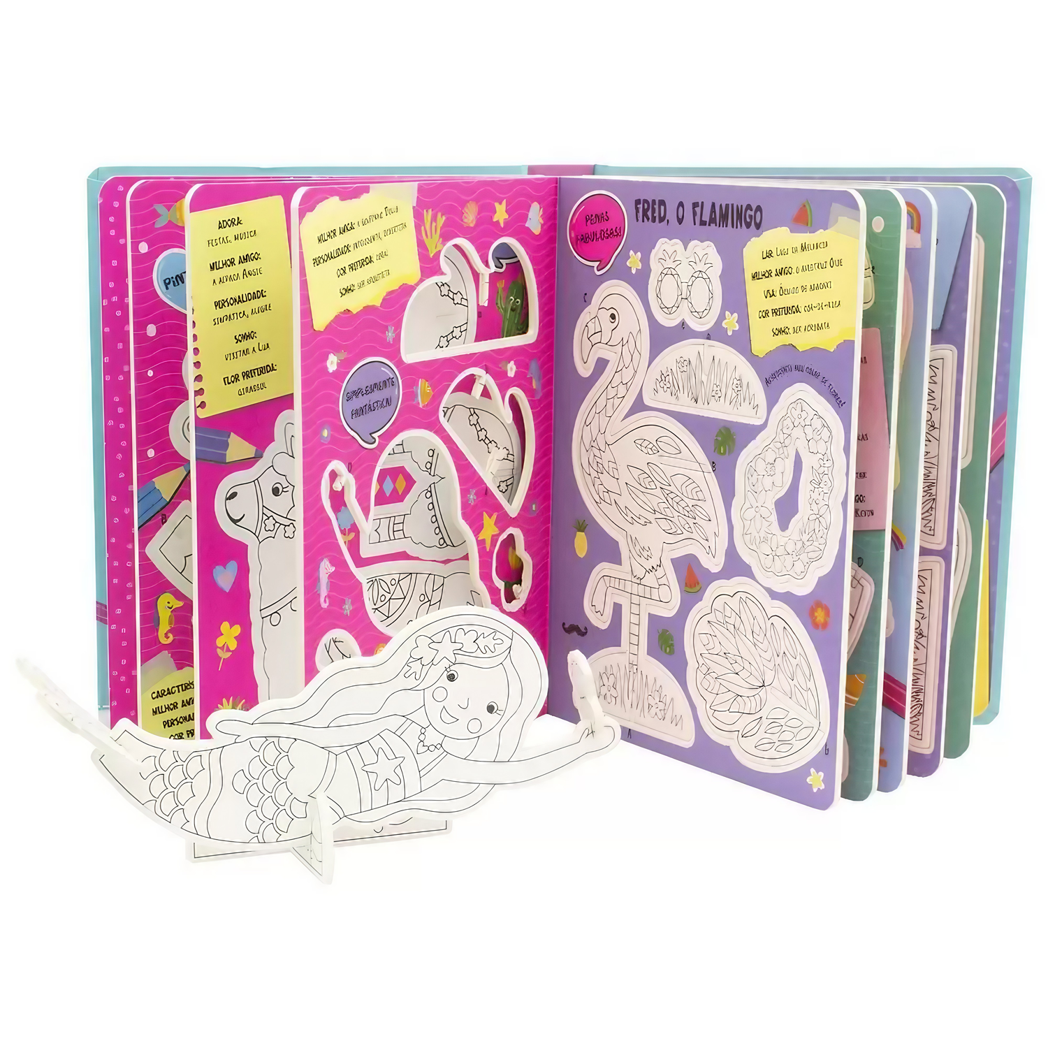 Diversidade de Modelos: Este livro oferece uma variedade de personagens para decorar e montar, incluindo unicórnios, bichos-preguiça, flamingos, girafas, sereias e muito mais. As crianças podem escolher seus favoritos e dar asas à imaginação na criação de suas próprias histórias e aventuras.
