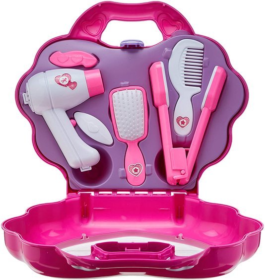 Com um design encantador em formato de coração, ela acompanha tudo o que a criançada precisa para soltar a criatividade: prancha, secador, escova, pente e presilhas. Ideal para brincar de cabeleireira com os amigos e levar a brincadeira para onde quiser, mantendo tudo organizado na maletinha.