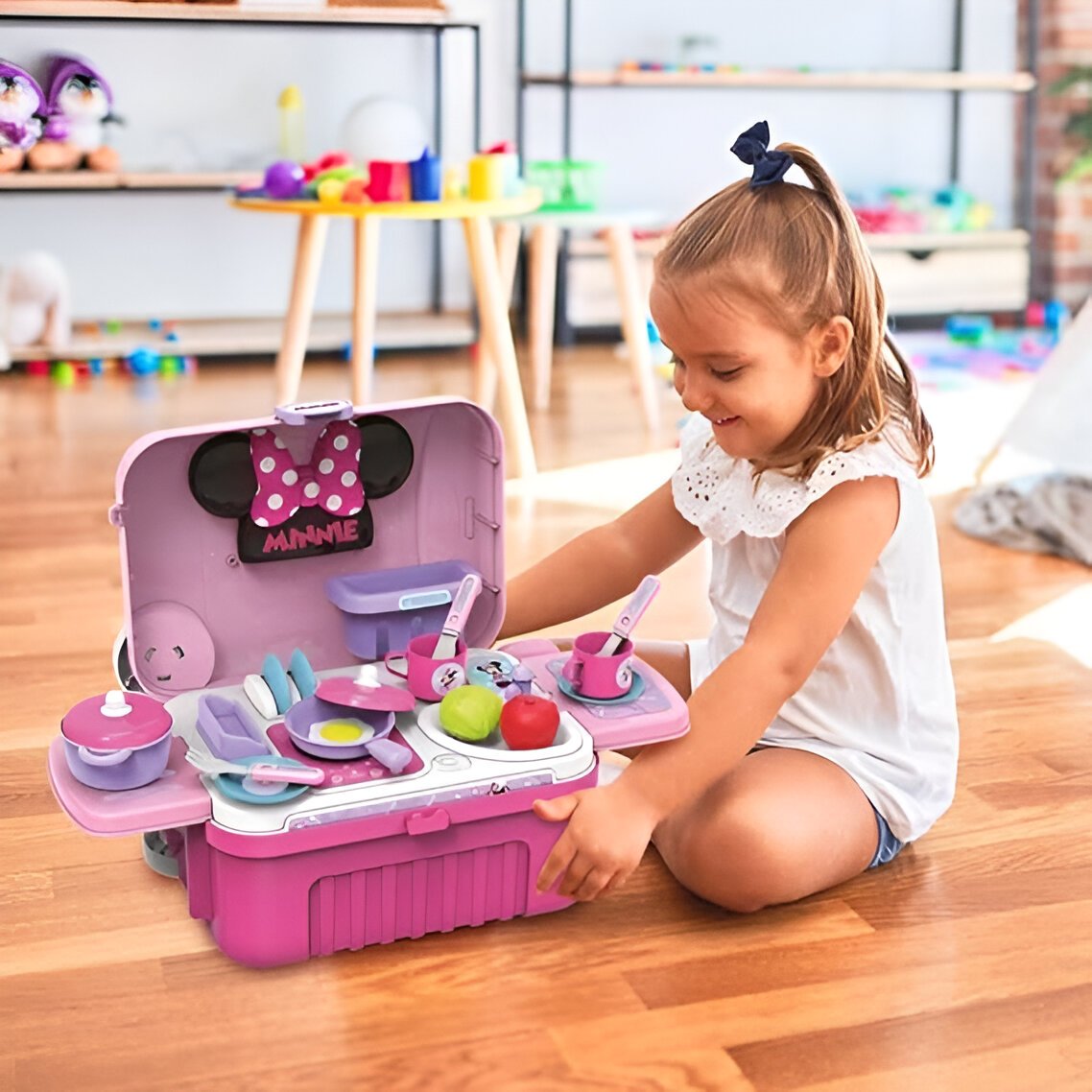 A Maleta 3 em 1 Minnie Cozinha com Acessórios da Multikids é perfeita para as pequenas fãs da Minnie que adoram brincar de casinha! Com um design encantador na cor rosa e ilustrações da personagem, essa maletinha versátil se transforma em três formas de diversão: maleta, bancada e cozinha. Ideal para estimular a criatividade e as habilidades sociais, é recomendada para crianças a partir de 3 anos. Além disso, seu formato compacto permite que seja levada para qualquer lugar, tornando-se ótima para viagens e passeios.