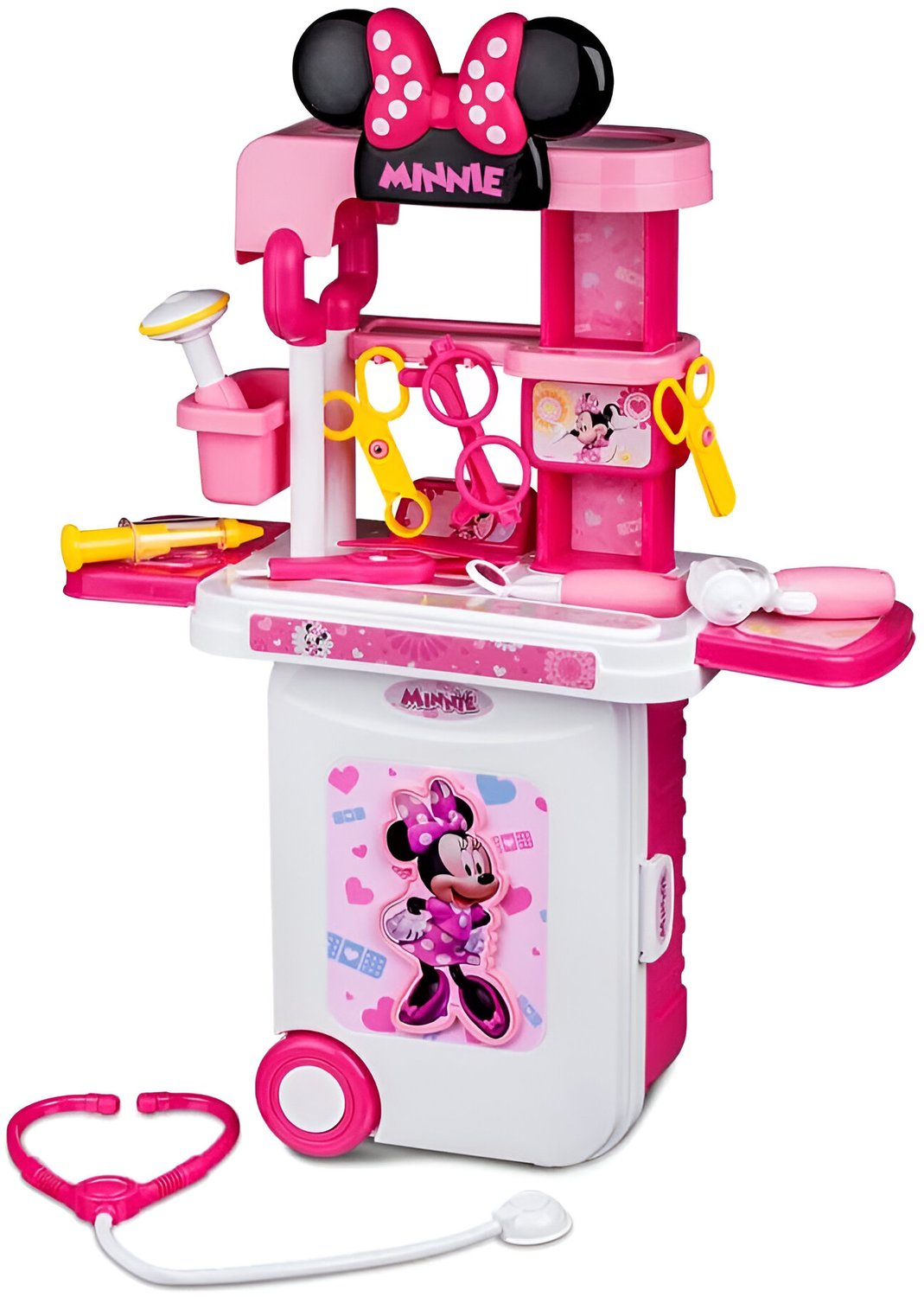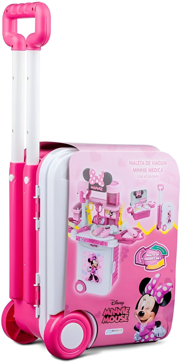 Diversão e cuidados em dose tripla com a Maleta de Viagem 3 em 1 Minnie Médico! A personagem mais amada do mundo agora ajuda as crianças a cuidarem dos seus pacientes de brincadeira com muito estilo, cor e criatividade. Essa maletinha supercompleta transforma-se em maleta de viagem, mesa de cirurgia e kit médico, permitindo diversas formas de brincar e aprender. Ela vem com vários acessórios temáticos, como estetoscópio, seringa, pinças, termômetro, entre outros itens essenciais para o atendimento médico de mentirinha.