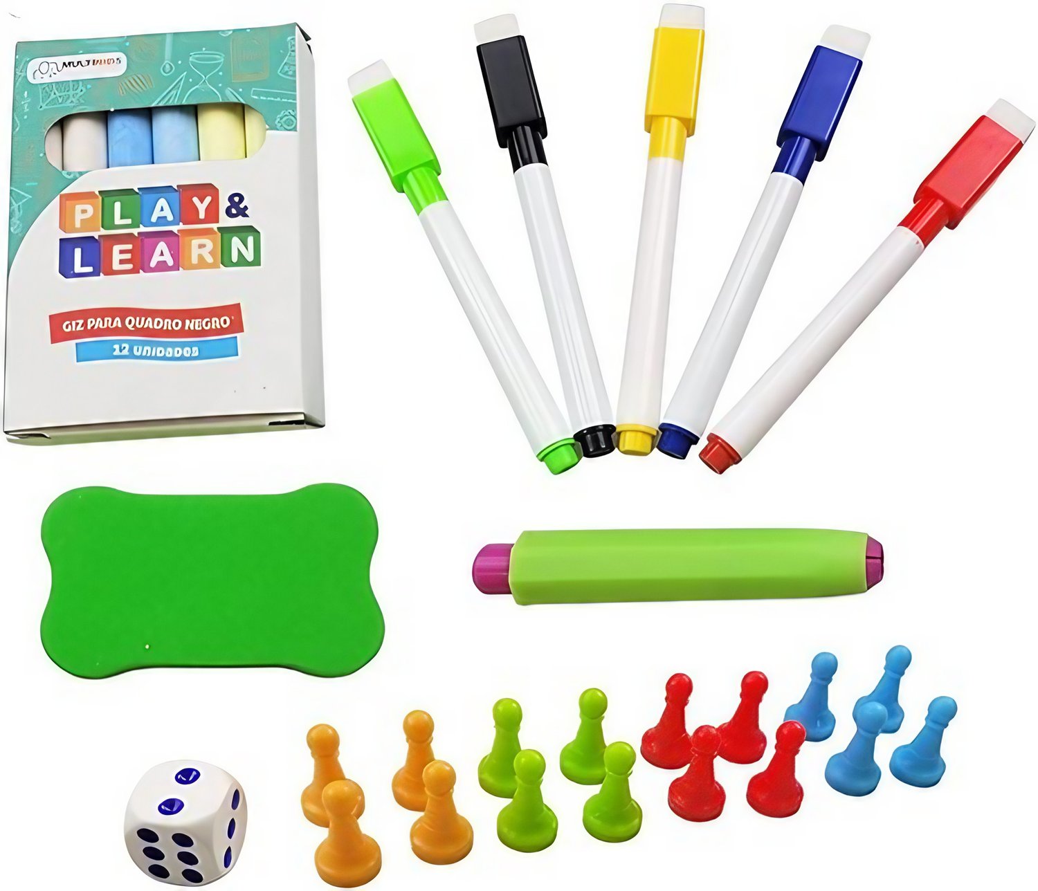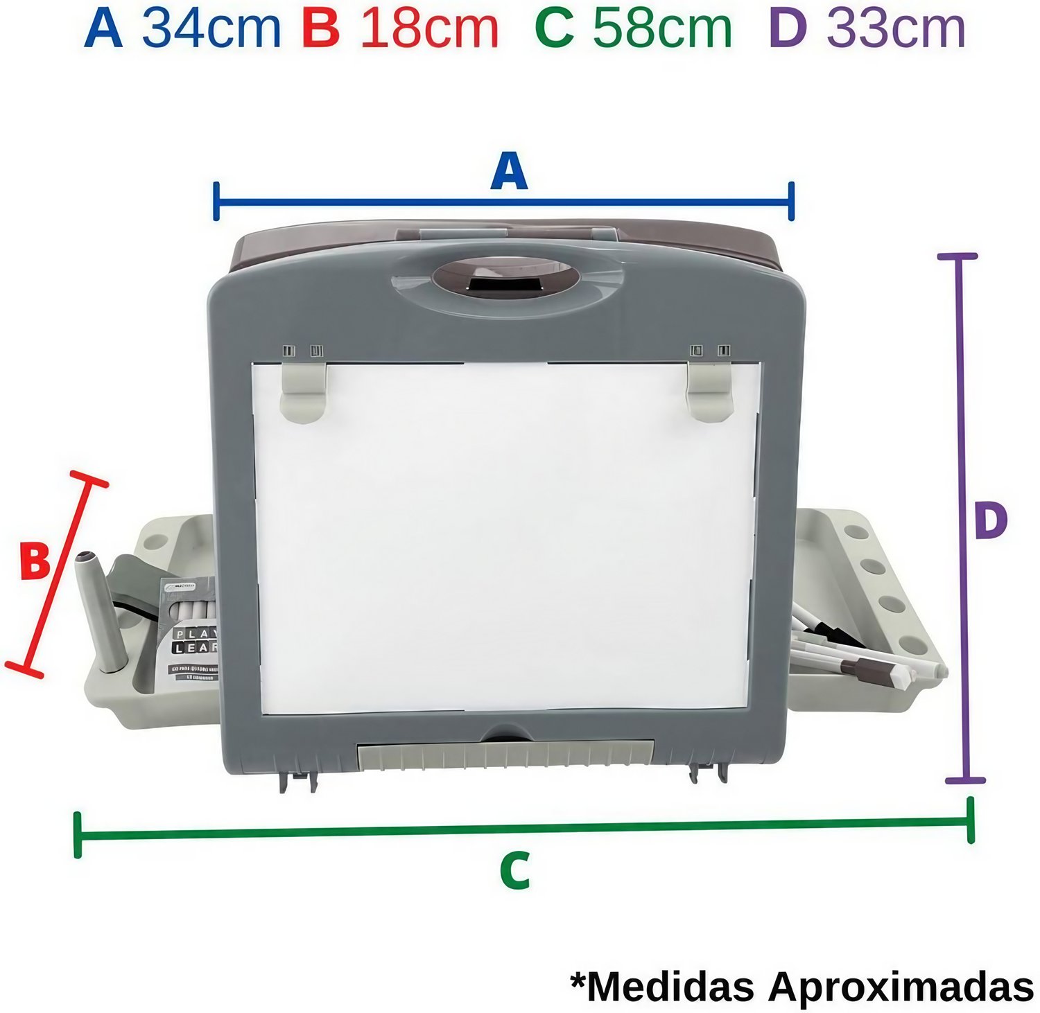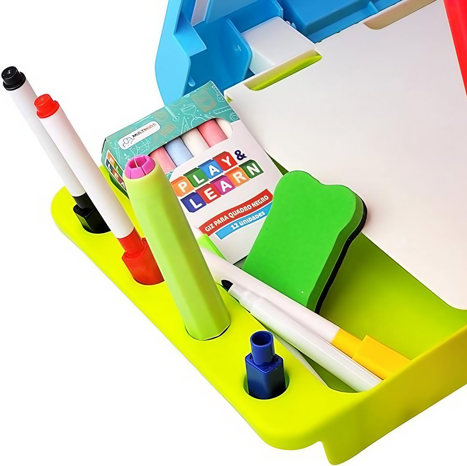 - ✔️ Acessórios removíveis, como giz e canetas, para diversas atividades.