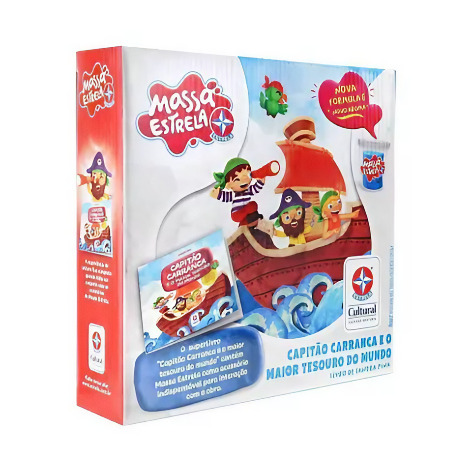O superlivro “Capitão Carranca e o Maior Tesouro do Mundo” oferece uma experiência de leitura única, complementada pela Massa Estrela e acessórios para modelagem. A obra de Sandra Pina convida as crianças a se aventurarem pelos mares com o capitão rabugento em busca de tesouros perdidos, enquanto exploram sua criatividade com a Massa Estrela.