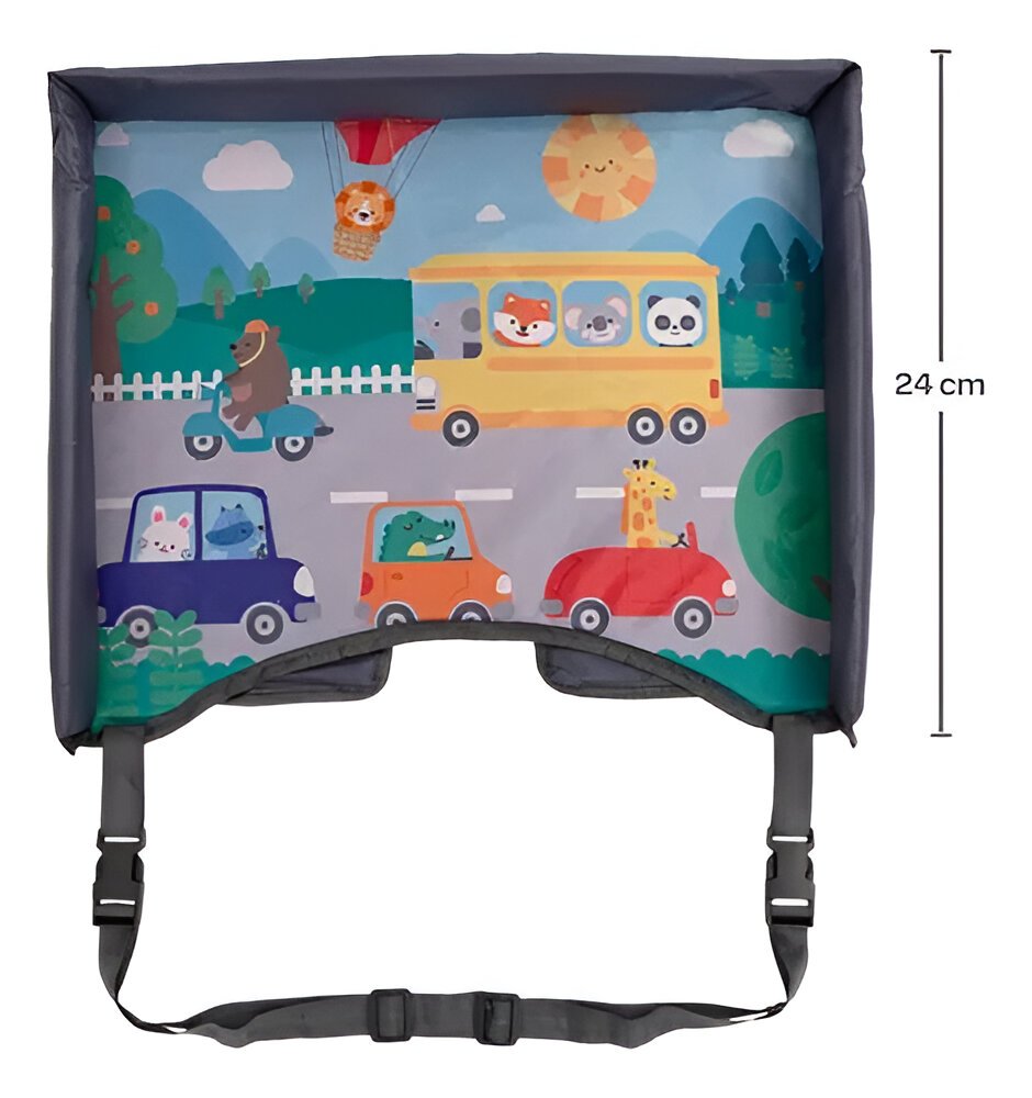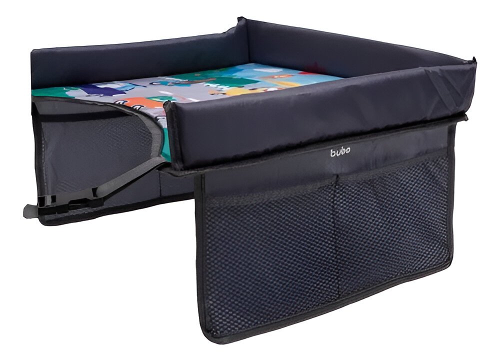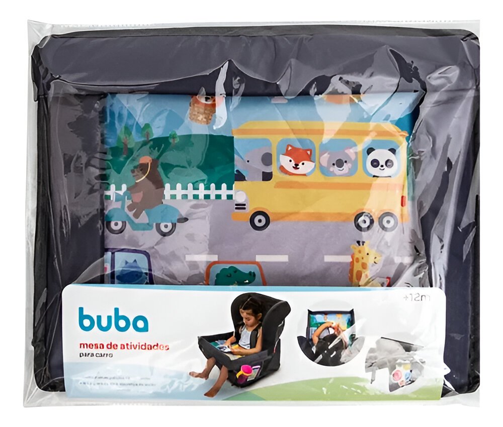 A Mesa de Atividades para Carro da Buba é ideal para entreter as crianças durante passeios e viagens. Com base resistente, bordas almofadadas e bolsos laterais, ela permite desenhar, lanchar e brincar com segurança. Possui fecho regulável, podendo ser usada no carro e em assentos de avião.