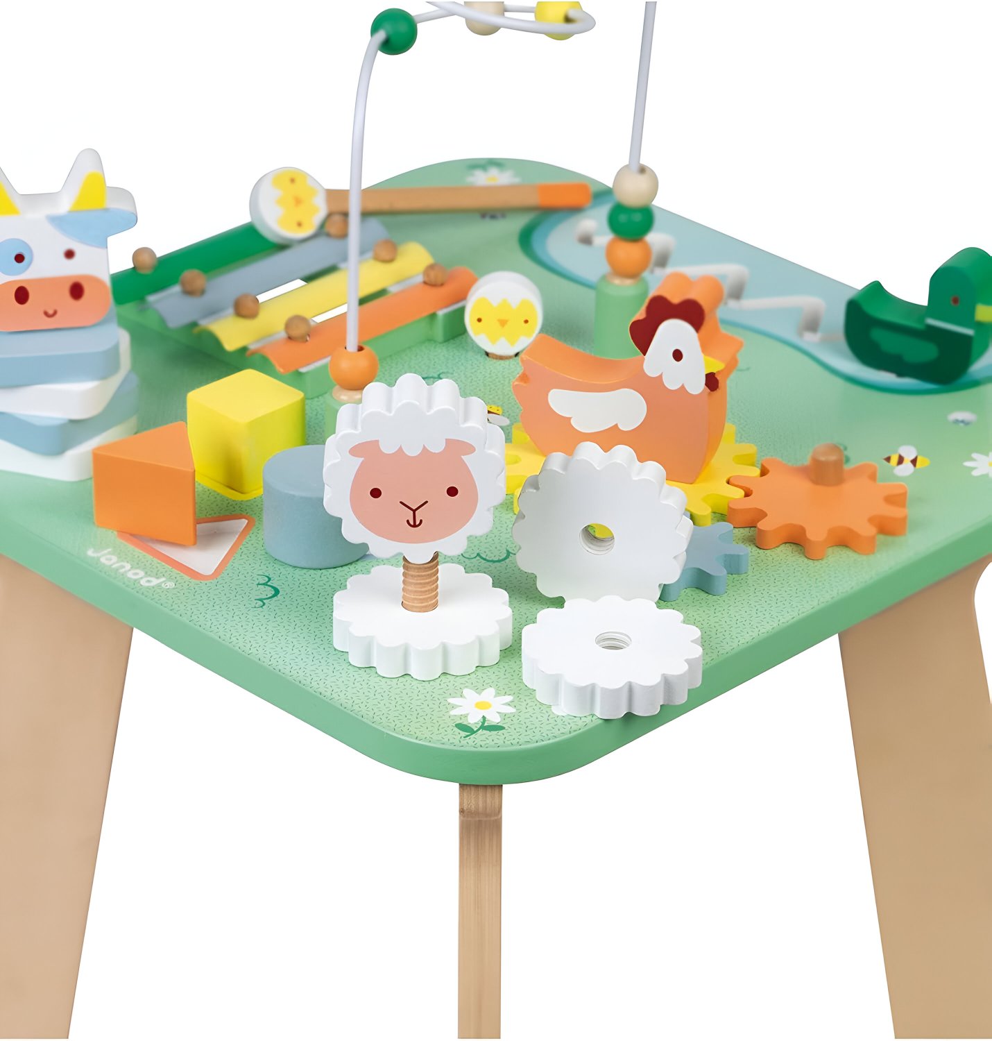 Explore o mundo encantador da fazenda com a Mesa de Atividades Fazendinha de Madeira da Janod! Criada especialmente para crianças a partir de 12 meses, esta mesa multifuncional traz diversão, aprendizado e estímulo sensorial em um só lugar. Com design vibrante e temática rural, ela convida os pequenos a desenvolverem habilidades motoras, cognitivas e musicais enquanto interagem com animais e elementos do campo.