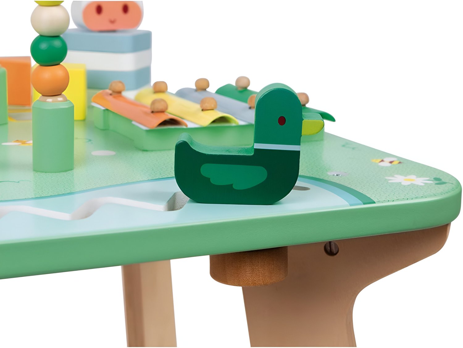 - Mesa multifuncional com 7 atividades: Diversão garantida com empilhamento, labirinto, xilofone, ábaco e muito mais.