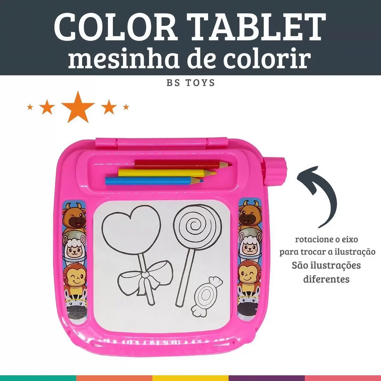 Portabilidade e Diversão: Desfrute de momentos criativos em qualquer lugar com esta mesinha portátil para colorir.