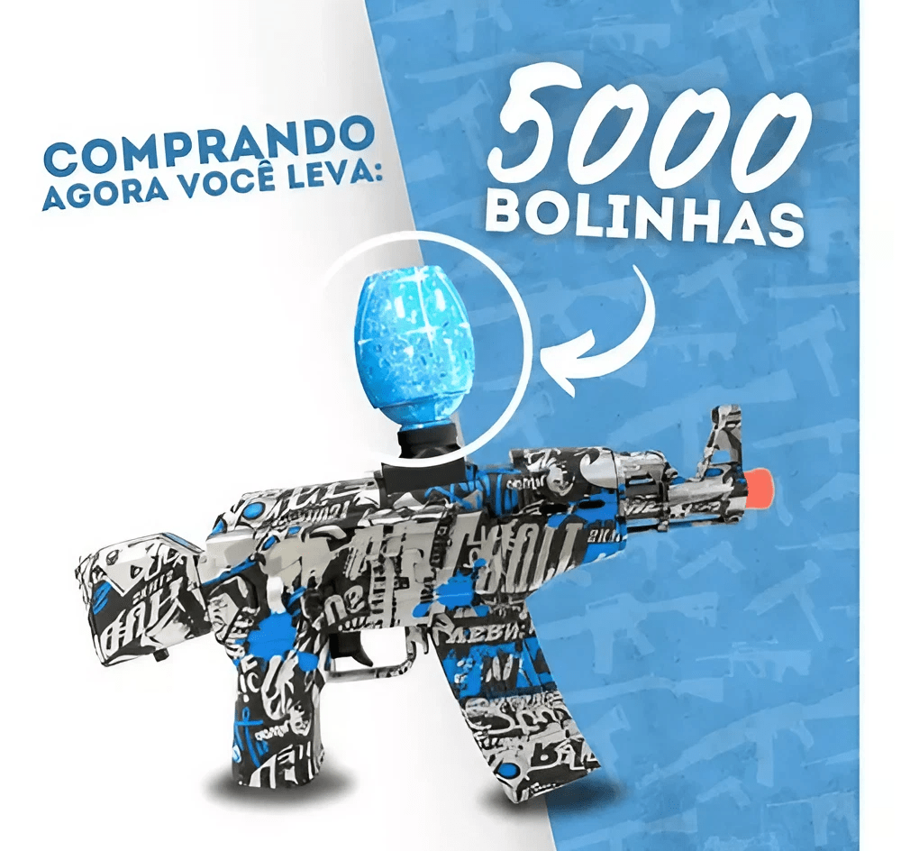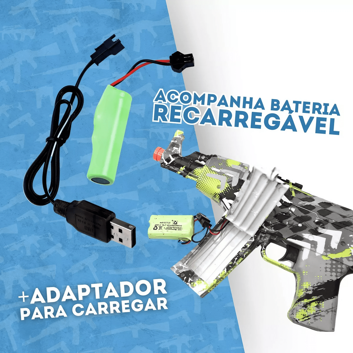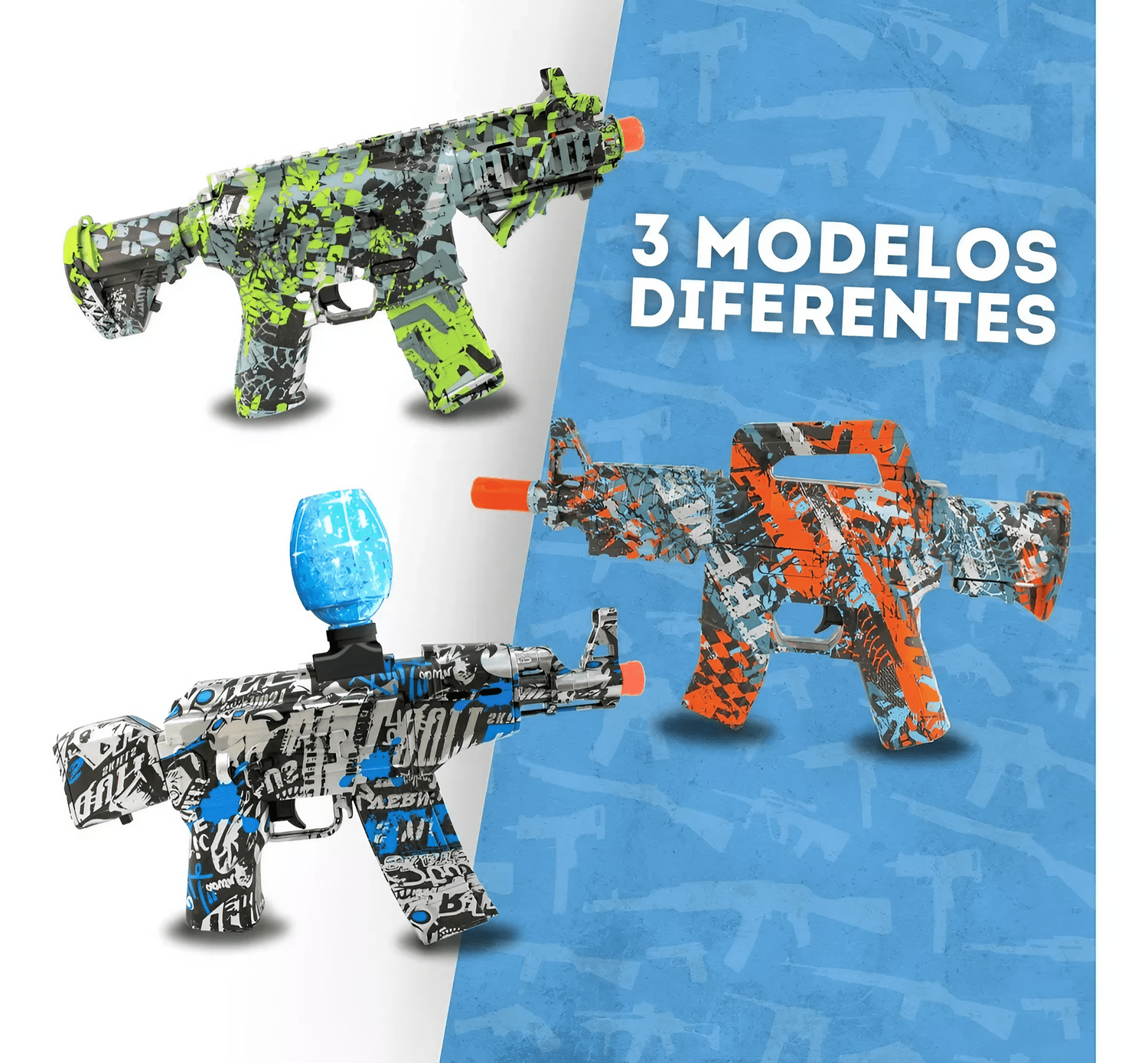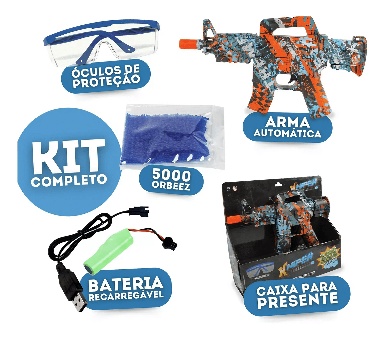• Conjunto completo: inclui lançador de gel, bateria reutilizável, cabo USB recarregável, 5.000 bolas de gel, 1 recipiente e 1 óculos de proteção.