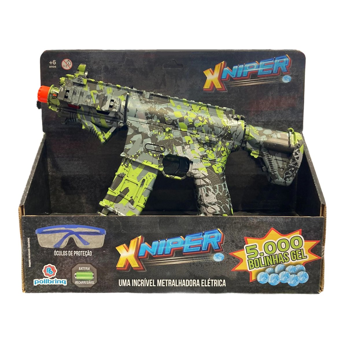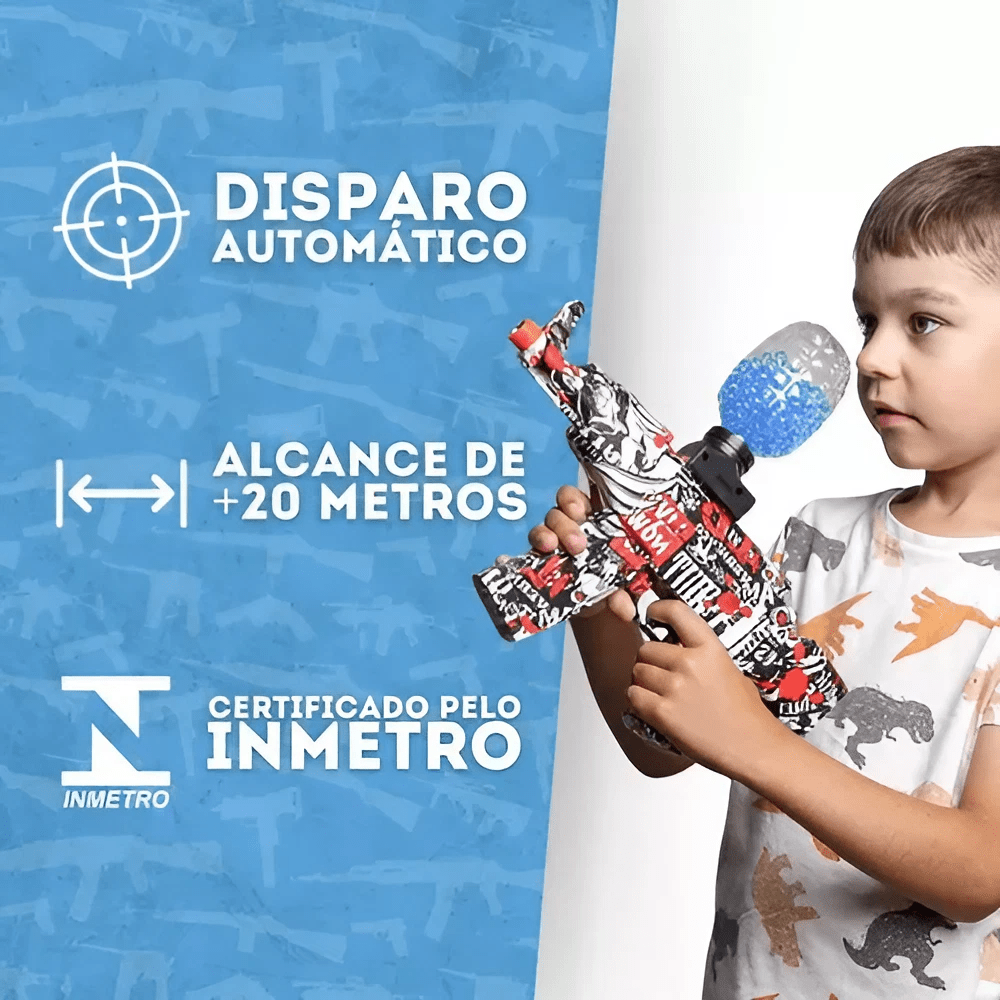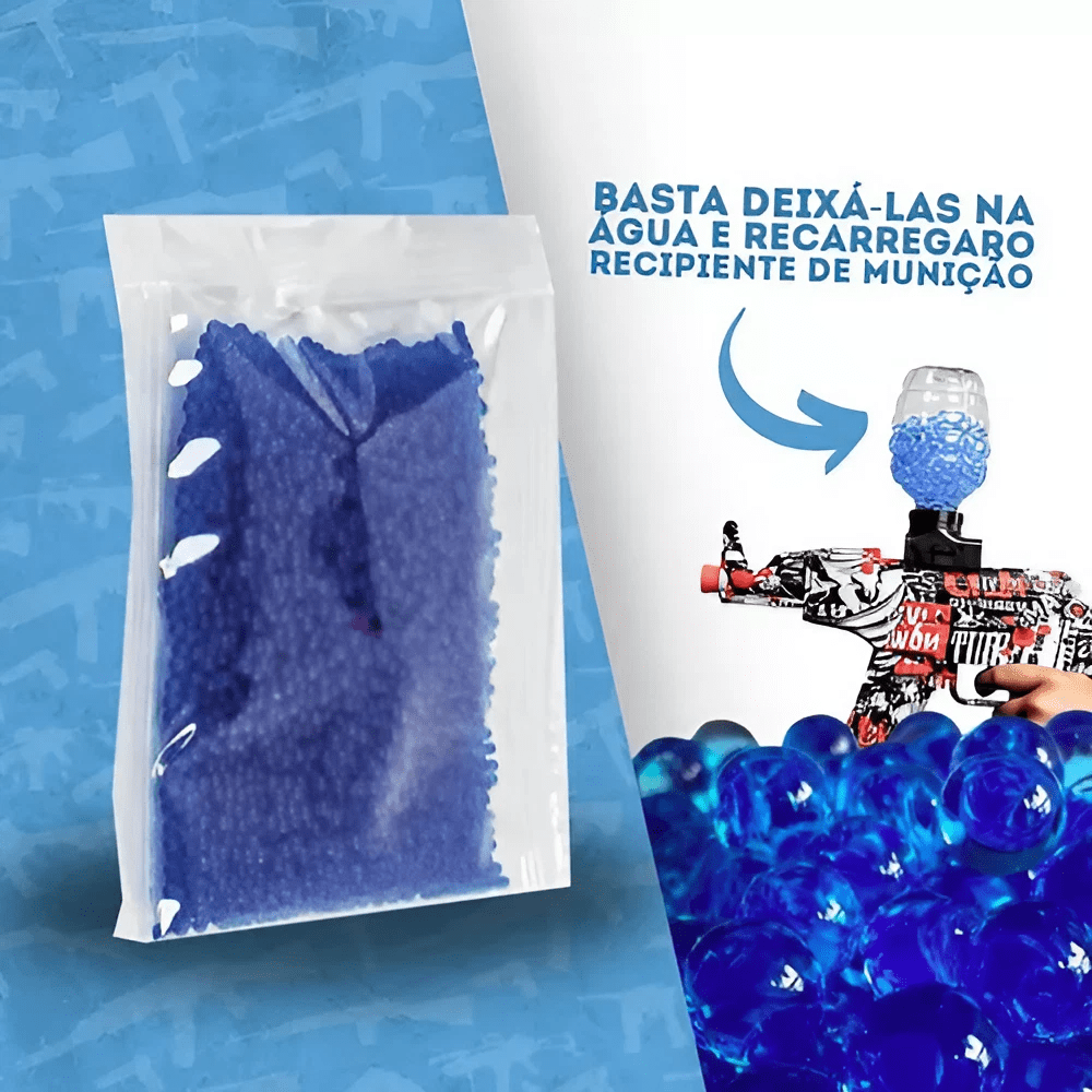 - Conjunto completo: inclui lançador de gel, bateria reutilizável, cabo USB recarregável, 5.000 bolas de gel, 1 recipiente e 1 óculos de proteção.