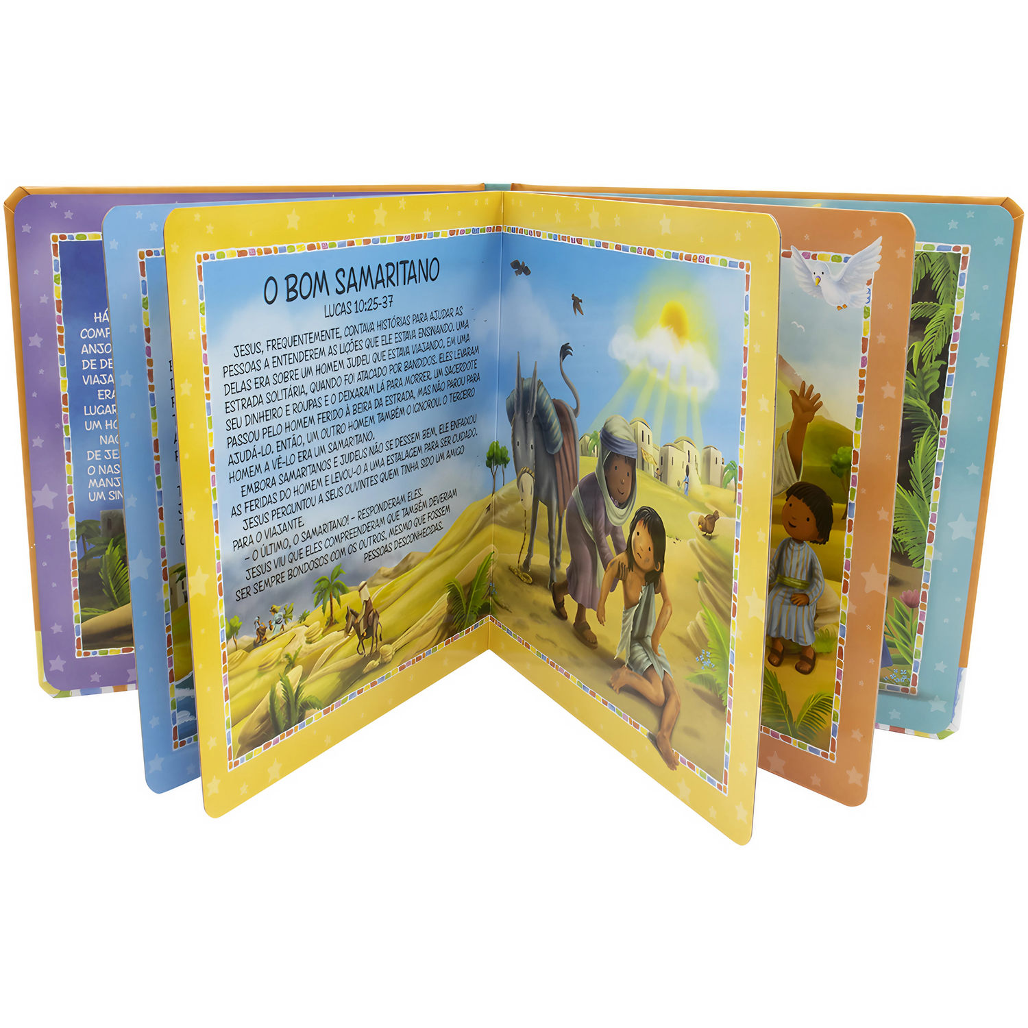 Demonstração da Fé: Com uma abordagem carinhosa e educativa, os contos da Bíblia neste livro ajudam as crianças a compreenderem a importância da fé e da espiritualidade em suas vidas, oferecendo mensagens de esperança, amor e compaixão.
