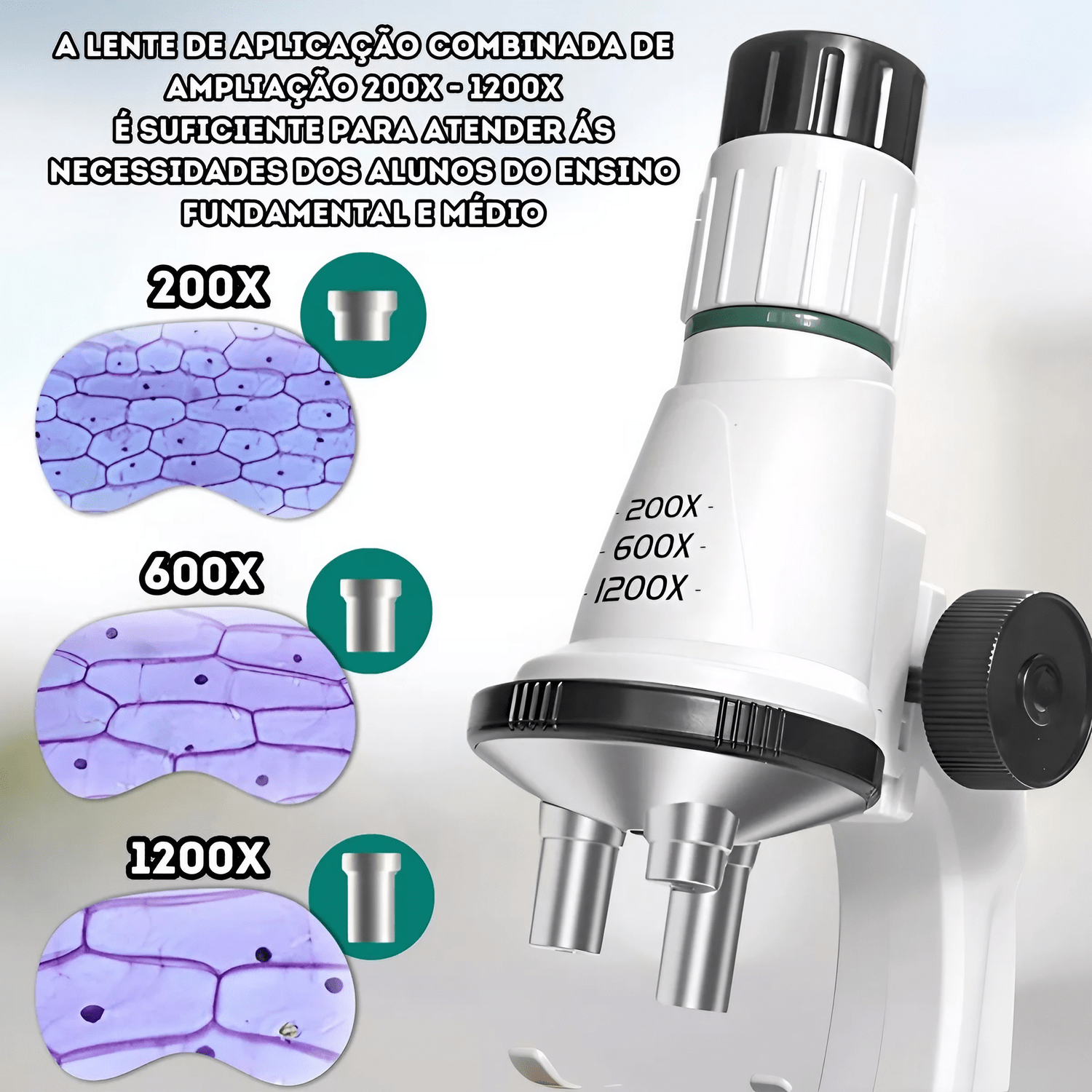 - ✔️ Explore o mundo microscópico com uma ampliação de até 1200x.